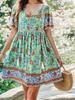 Женское пляжное мини-платье с цветочным принтом в стиле бохо, летнее, с V-образным вырезом, коротким рукавом, на шнуровке, повседневное, свободное, праздничное платье, женское