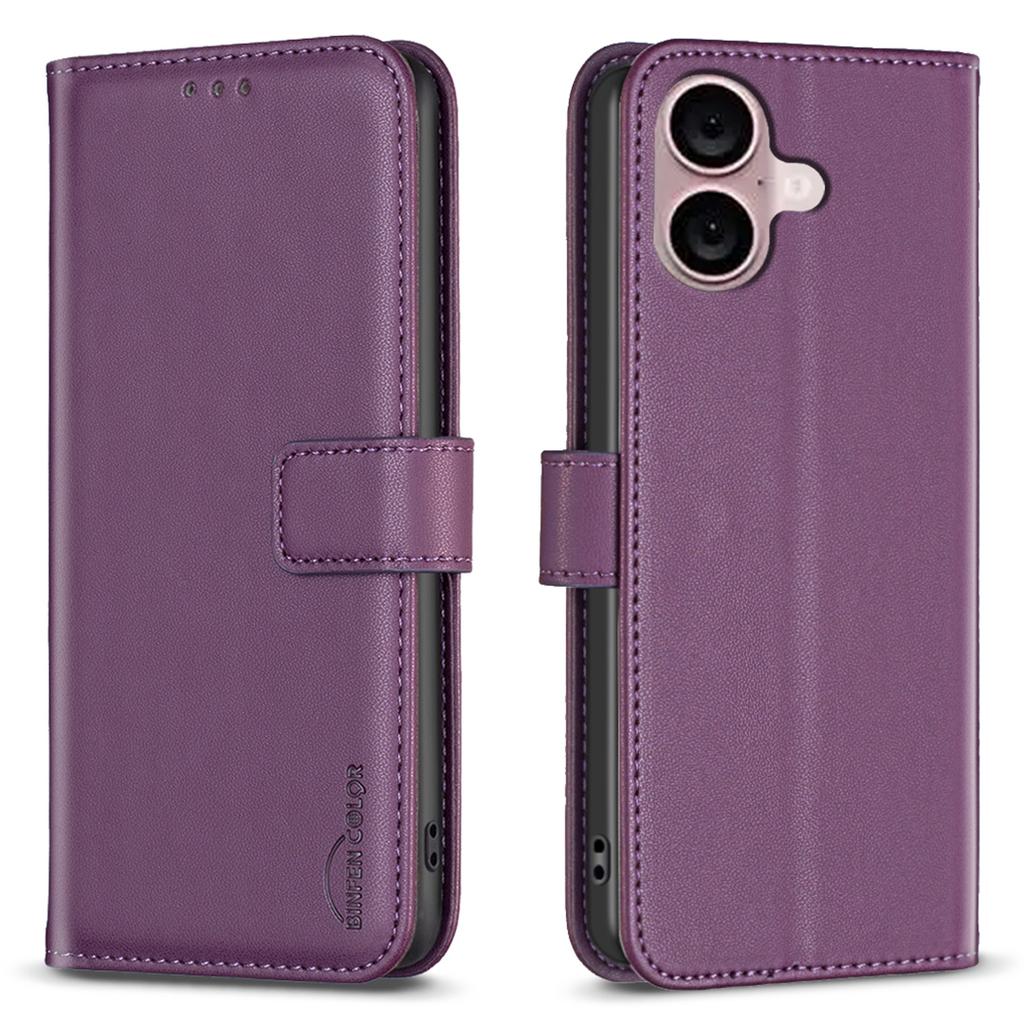 BINFEN COLOR BF17 For iPhone 16 Anti-Scratch Phone Shell PU Leather Stand Phone Case Wallet Cover