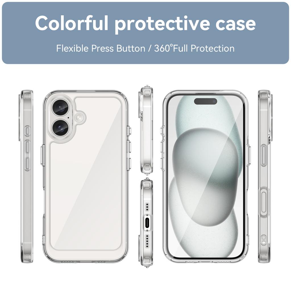 Прозрачный чехол для iPhone 16 из ТПУ + акрила, тонкая накладка для телефона (Большое отверстие для задней линзы)