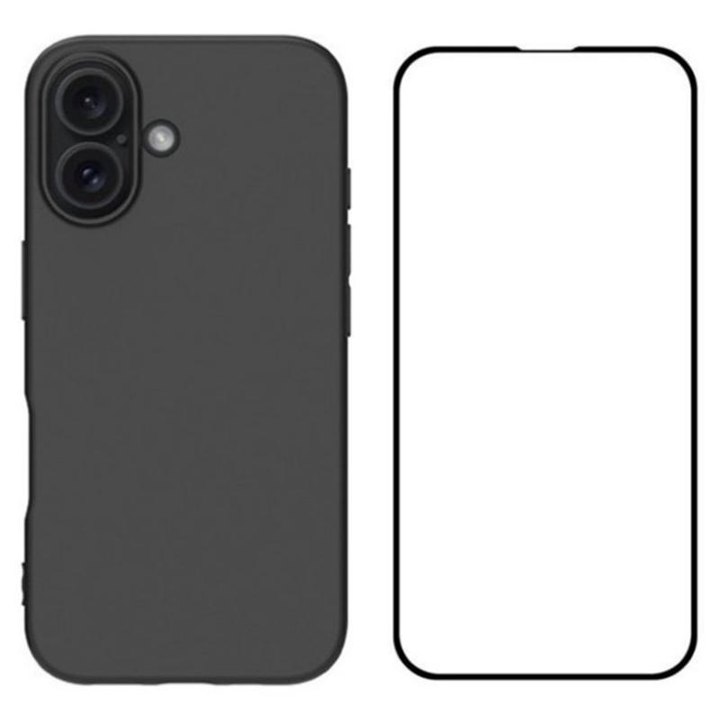 WANLONFENG MS Series for iPhone 16 Matte TPU Case with Tempered Glass Film (Big Lens Hole)