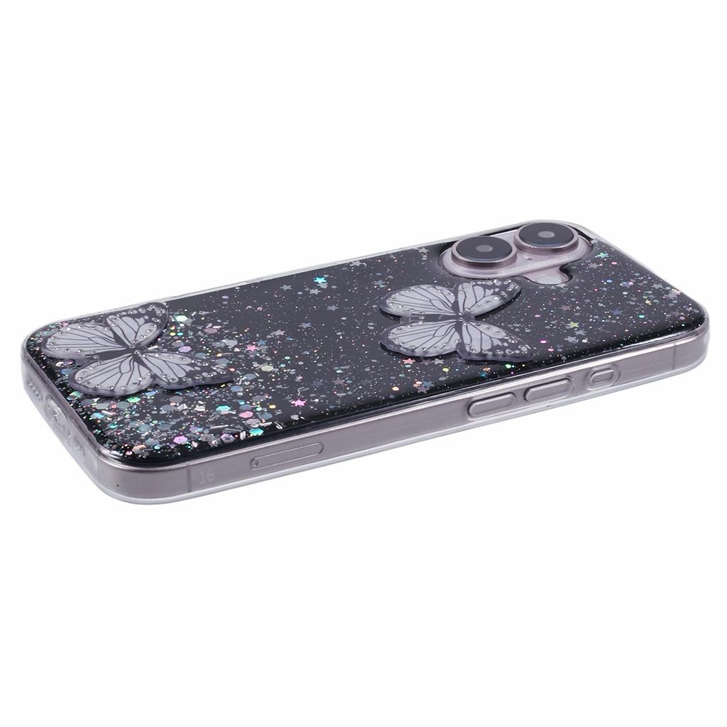 AW Series For iPhone 16 Case Glitter Bling PVC Butterfly TPU Shockproof Phone Cover
