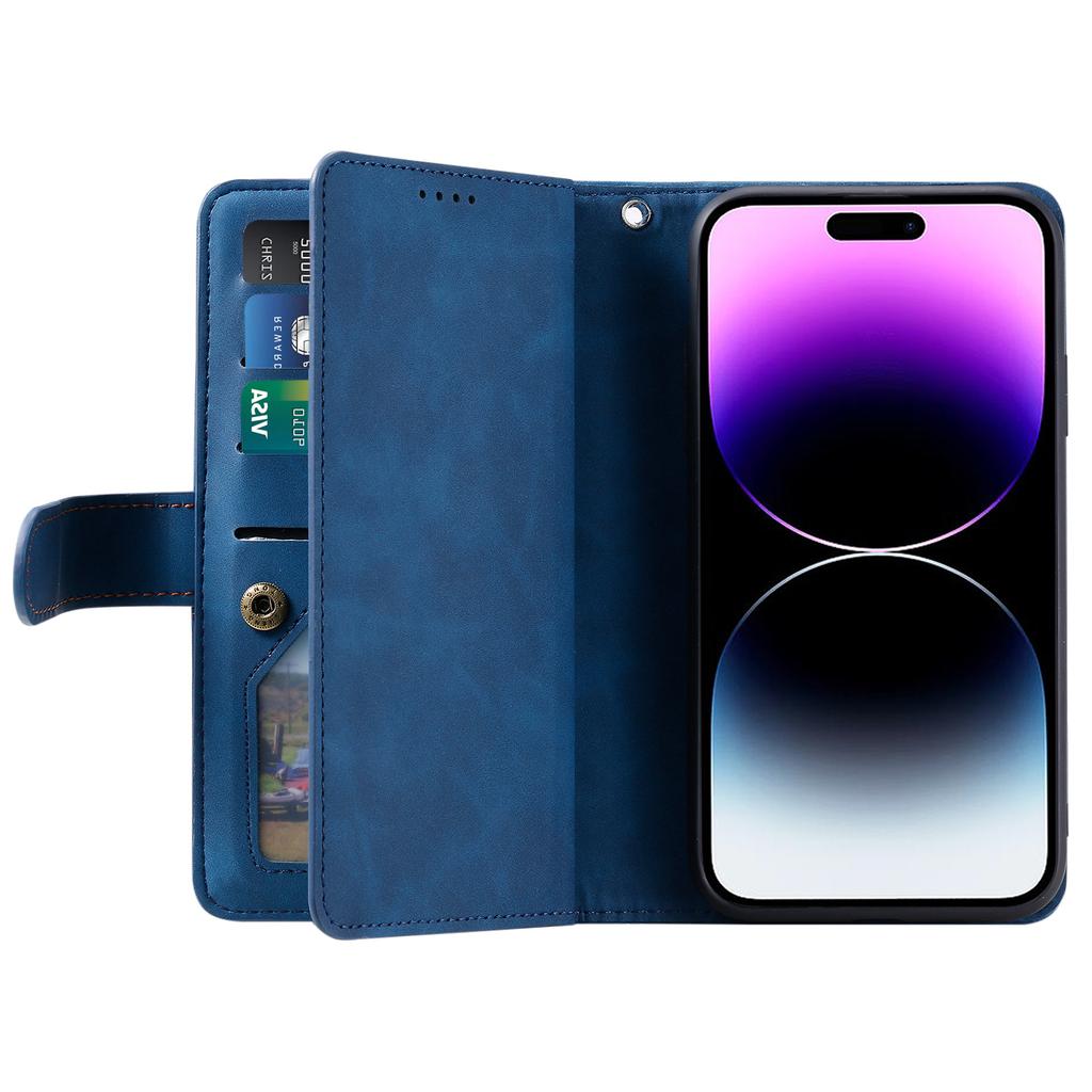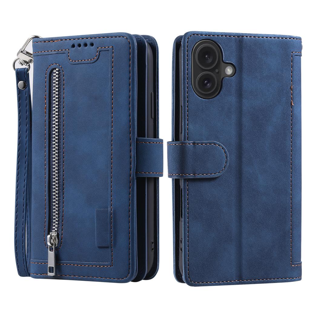 Для iPhone 16 Чехол из ПУ кожи Чехол для телефона с кошельком на молнии 9 слотов для карт