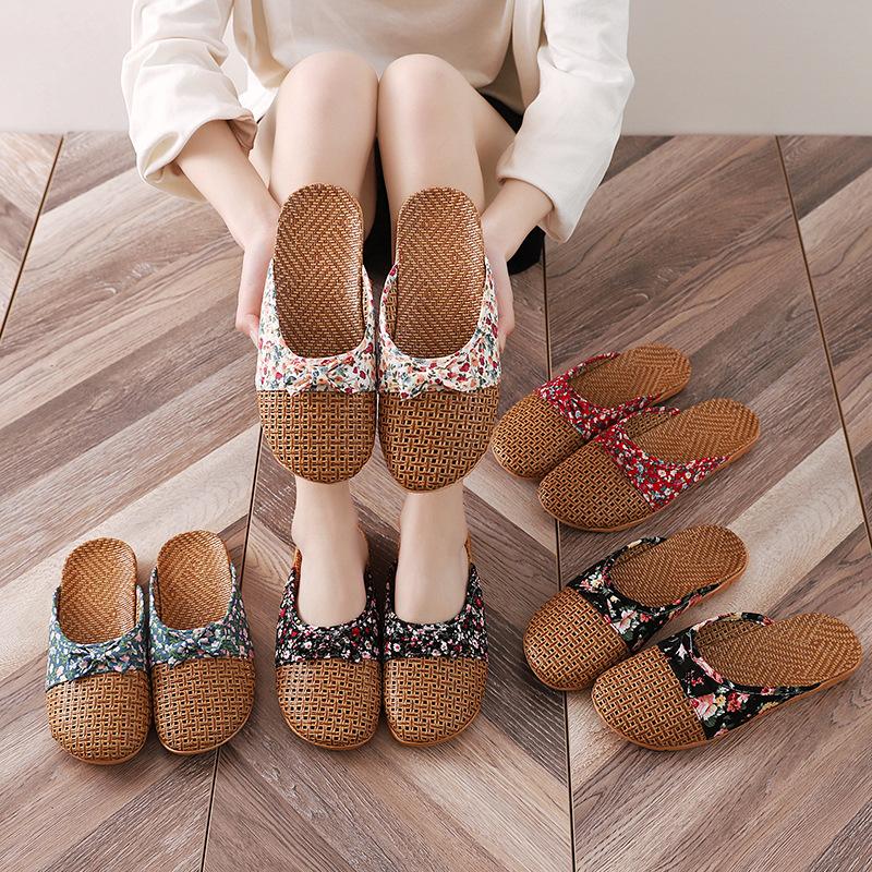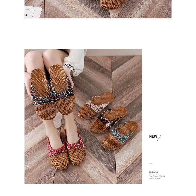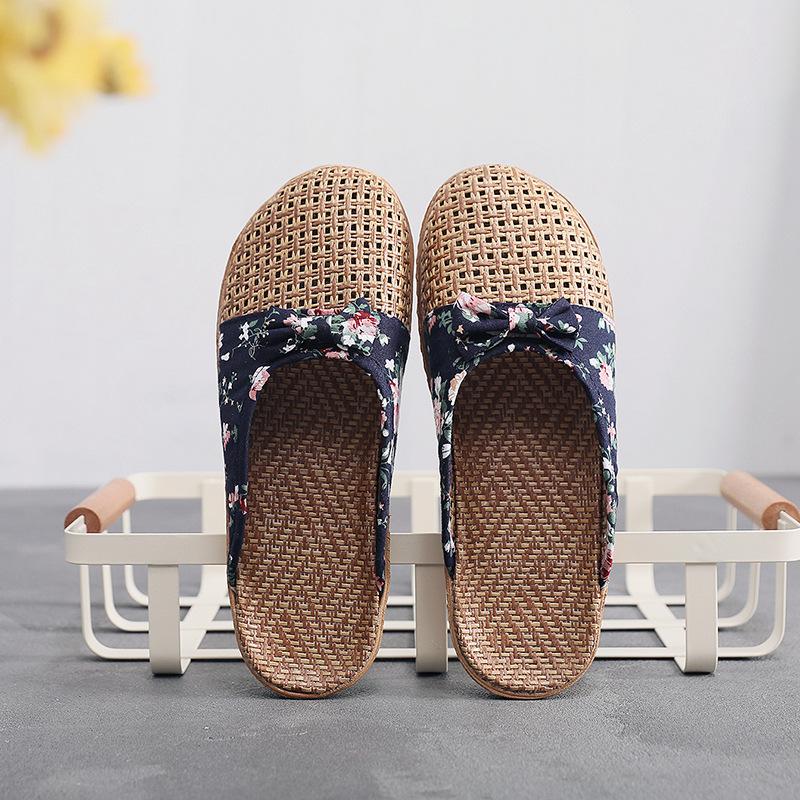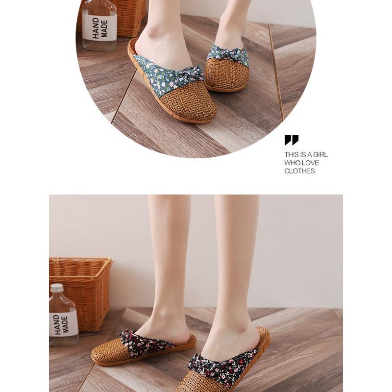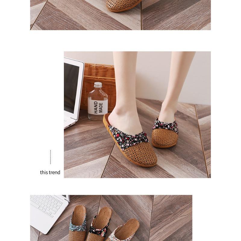 Летние женские льняные тапочки с закрытым носком в стиле ретро
