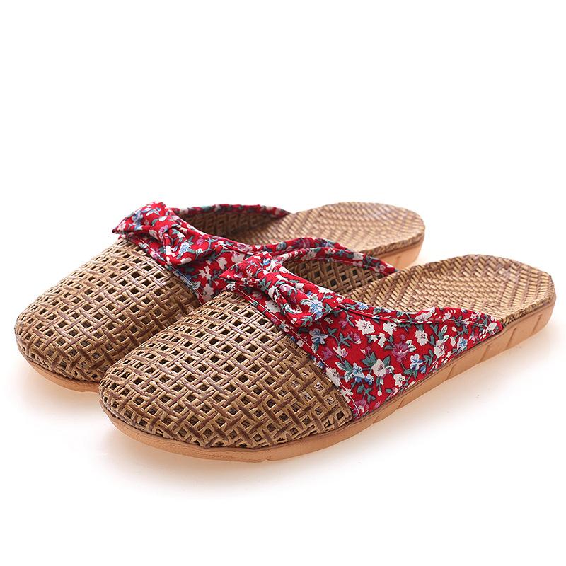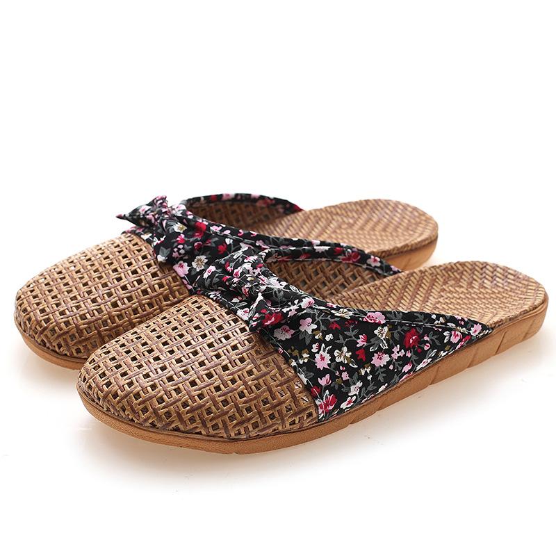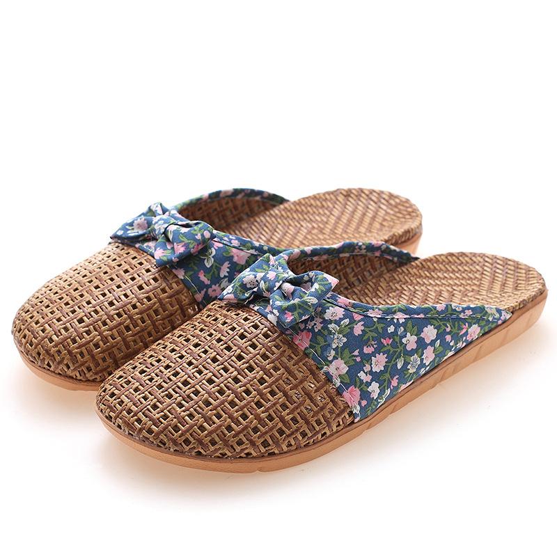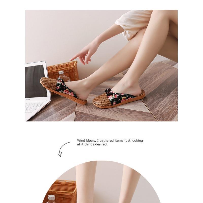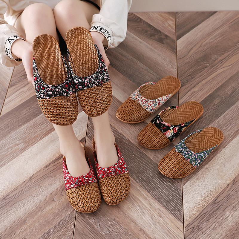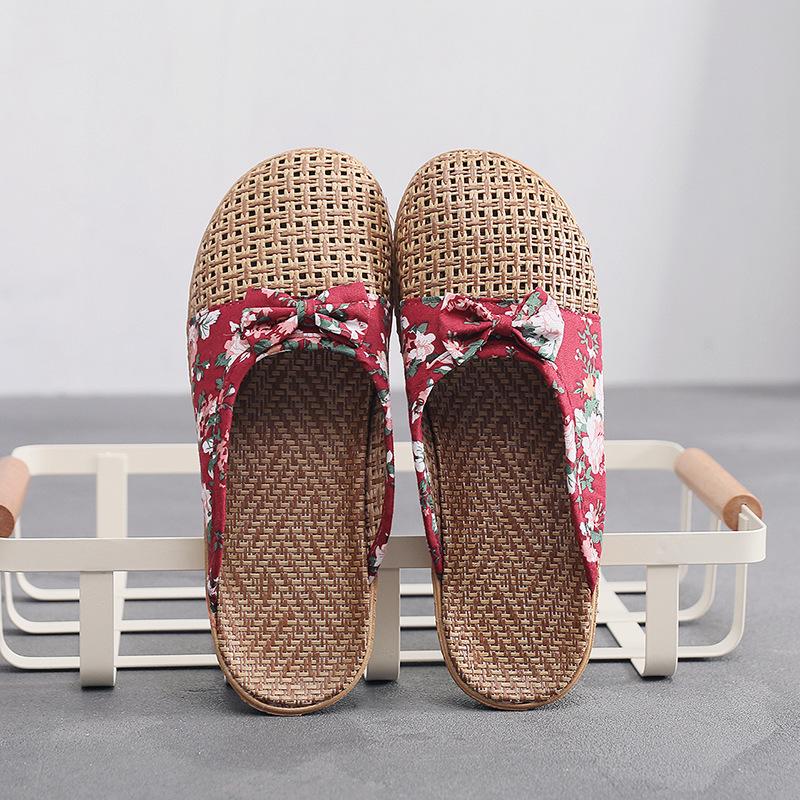 Летние женские льняные тапочки с закрытым носком в стиле ретро