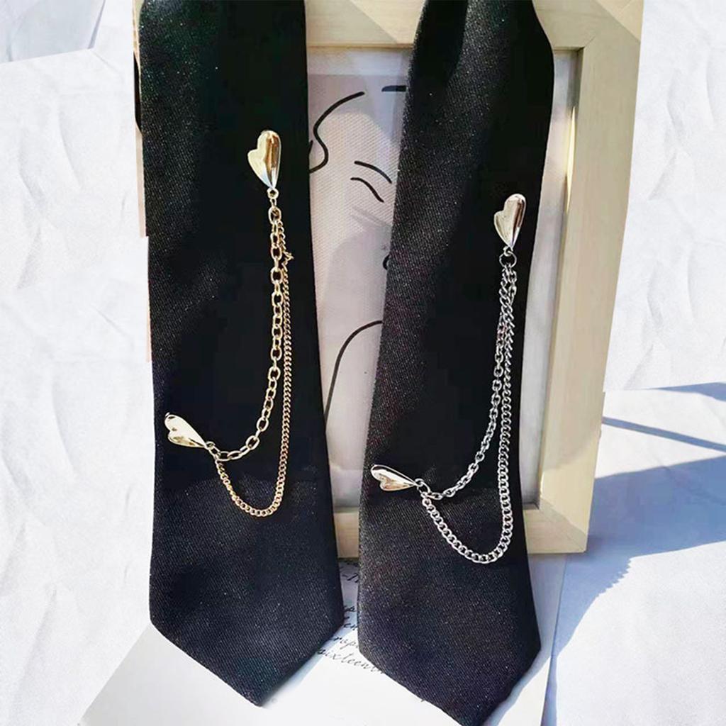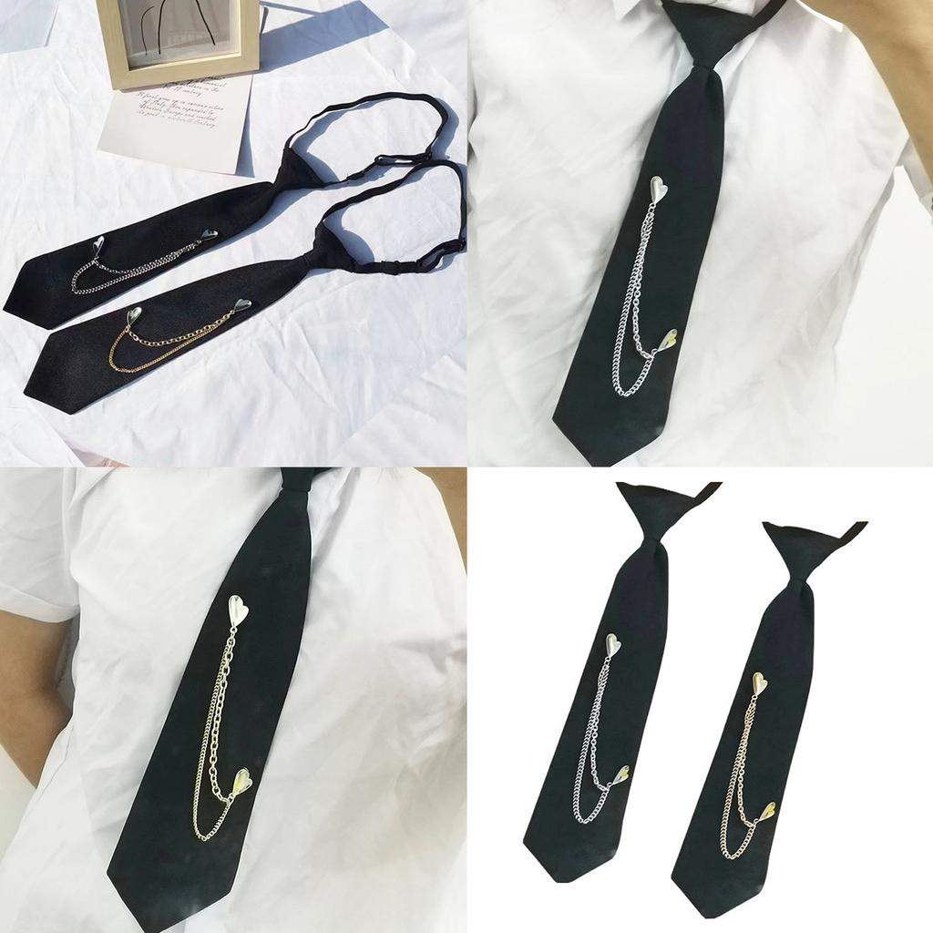 Японский панк-галстук с двумя сердечками, цепочка на шею, студенческая форма, регулируемый предварительно завязанный шейный галстук, воротник рубашки, шейный платок