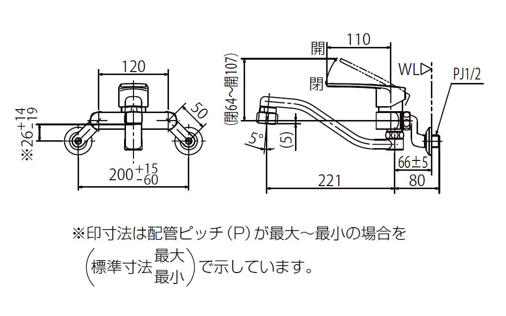 LIXIL INAX кухонный настенный смеситель с одним рычагом, эко-ручка, точечный душ, 220 мм, восходящая сливная труба с кухонным душем RSF-863YB