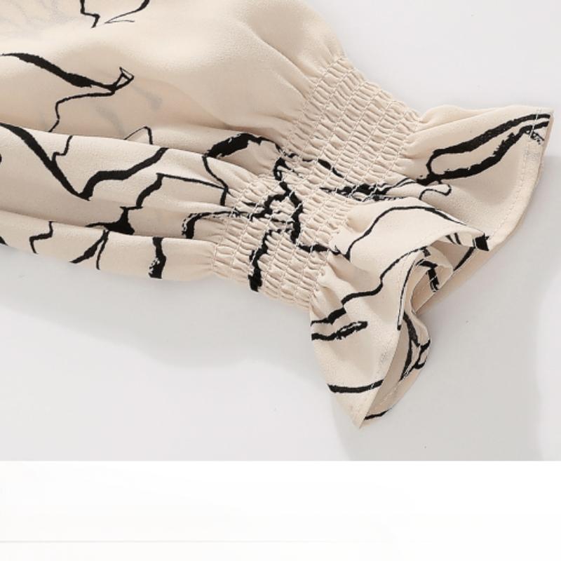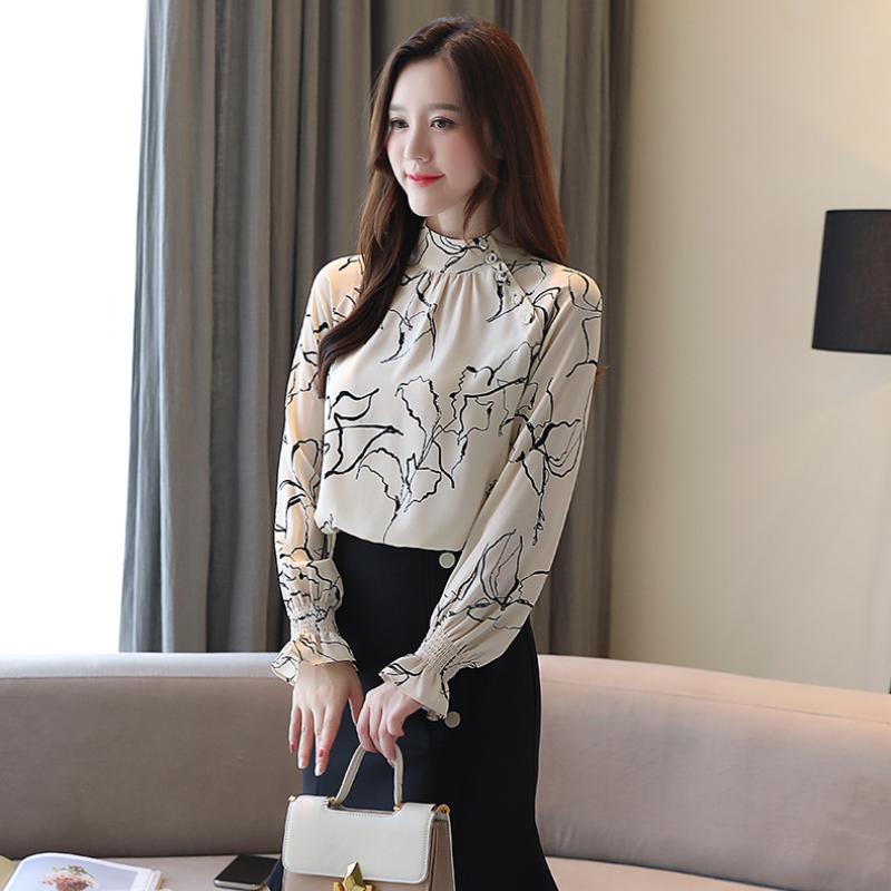 Модные облегающие шифоновые повседневные женские рубашки, весенние топы, расклешенные рукава, темпераментная блузка, женские элегантные принтованные простые офисные женские рубашки 26347