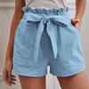 Летние женские свободные льняные повседневные шорты с карманами, однотонные, большого размера, с высокой талией, широкие брюки