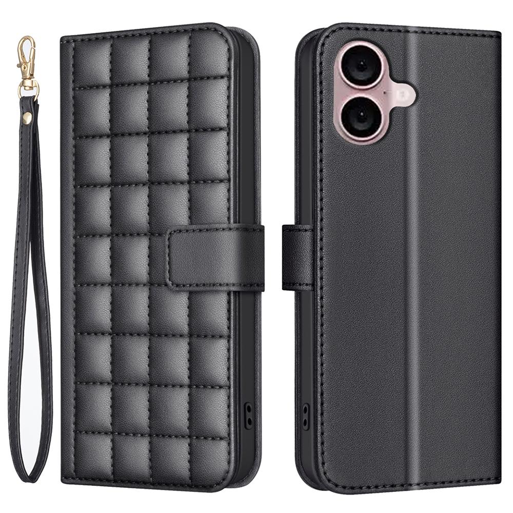 BINFEN COLOR BF34 для iPhone 16 чехол квадратный сетчатый узор кожаный чехол с ремешком на руку