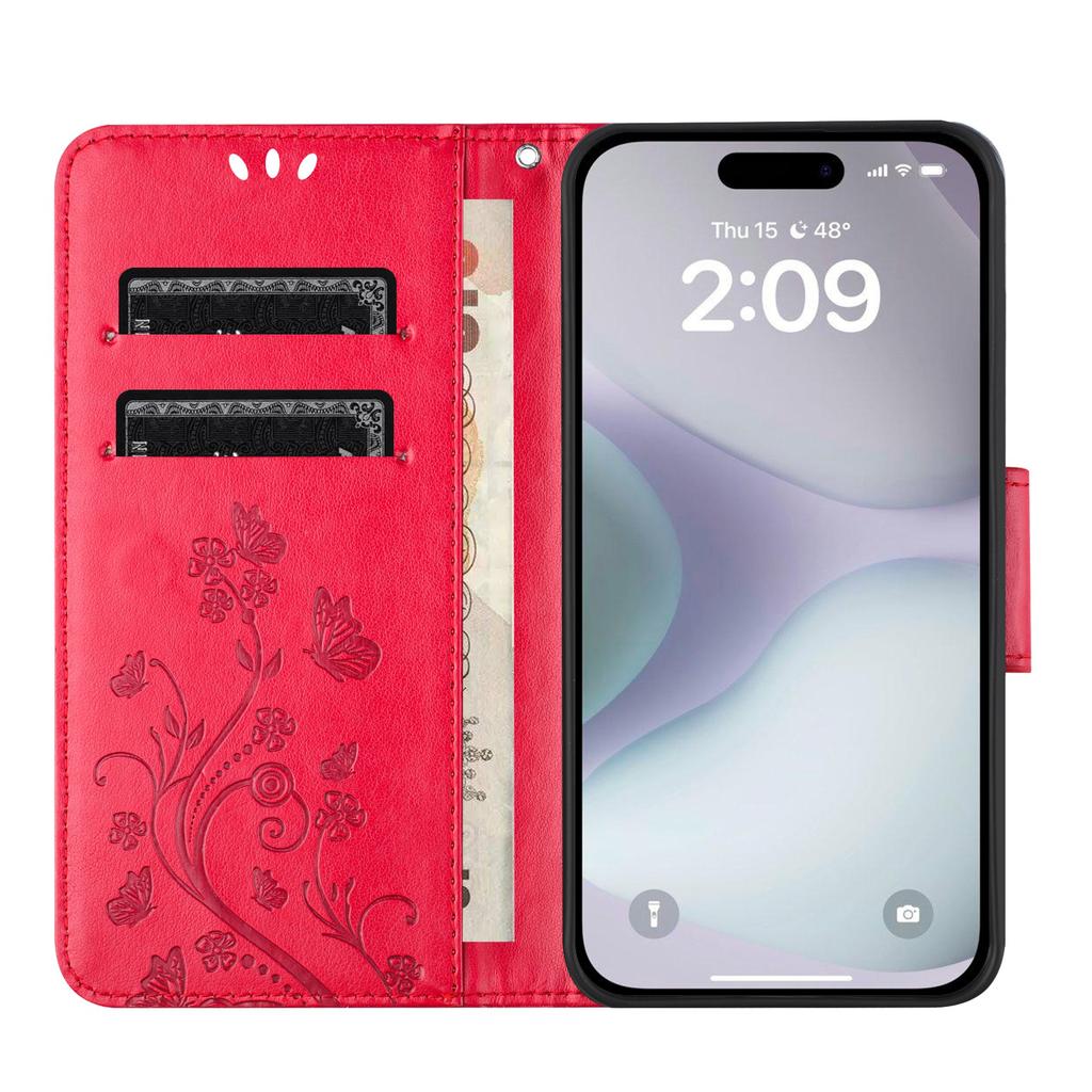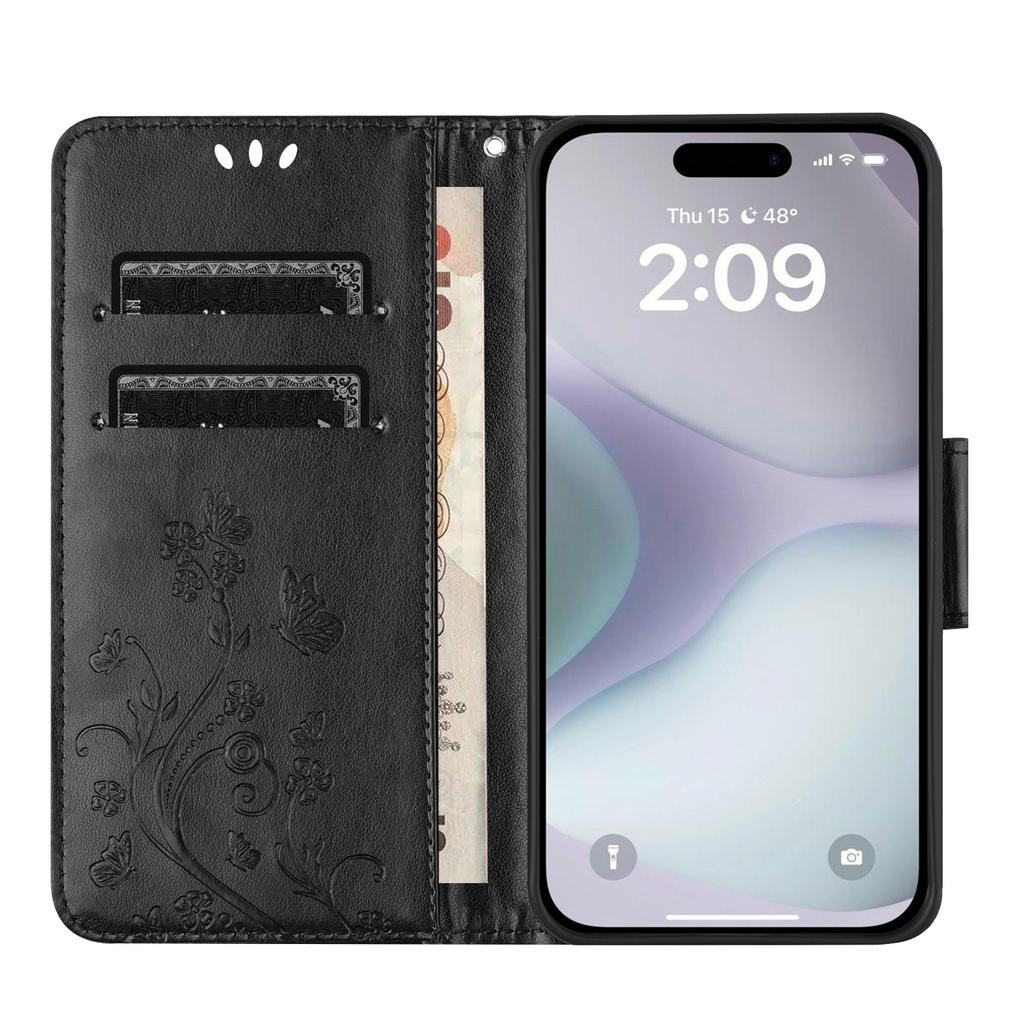 For iPhone 16 Leather Case Butterflies Flower Pattern Wallet Stand Phone Cover
