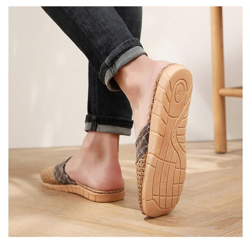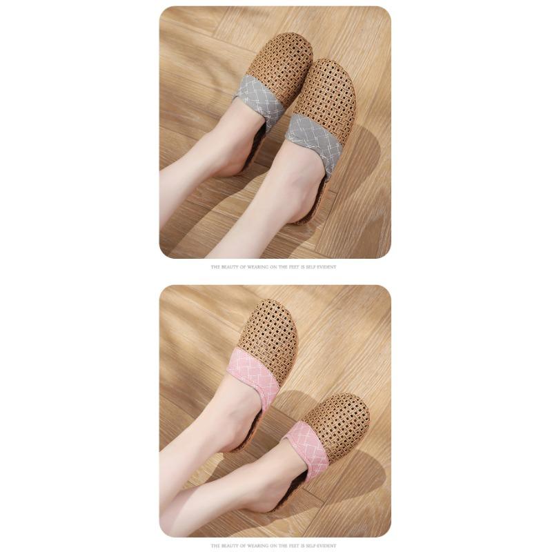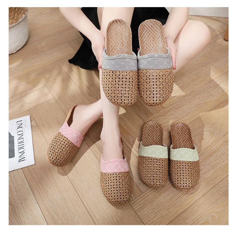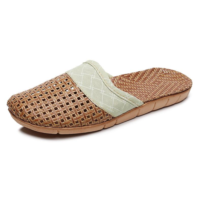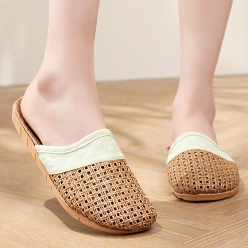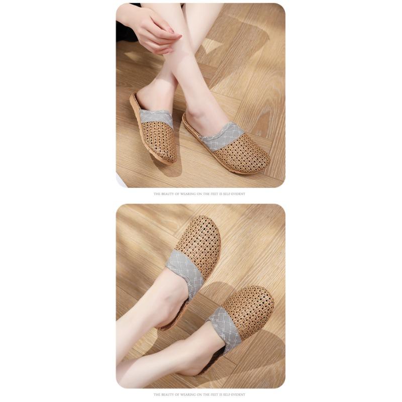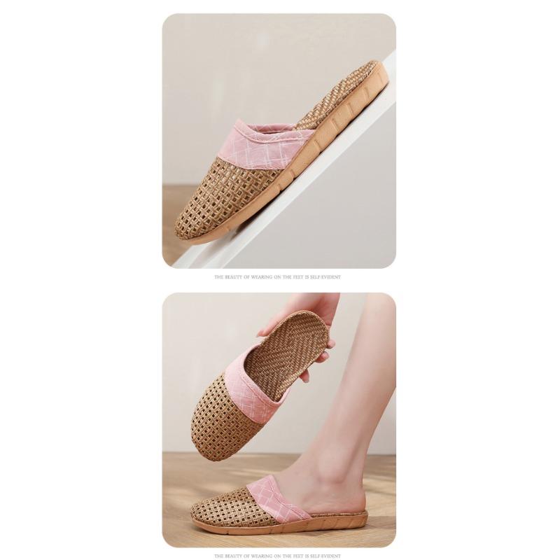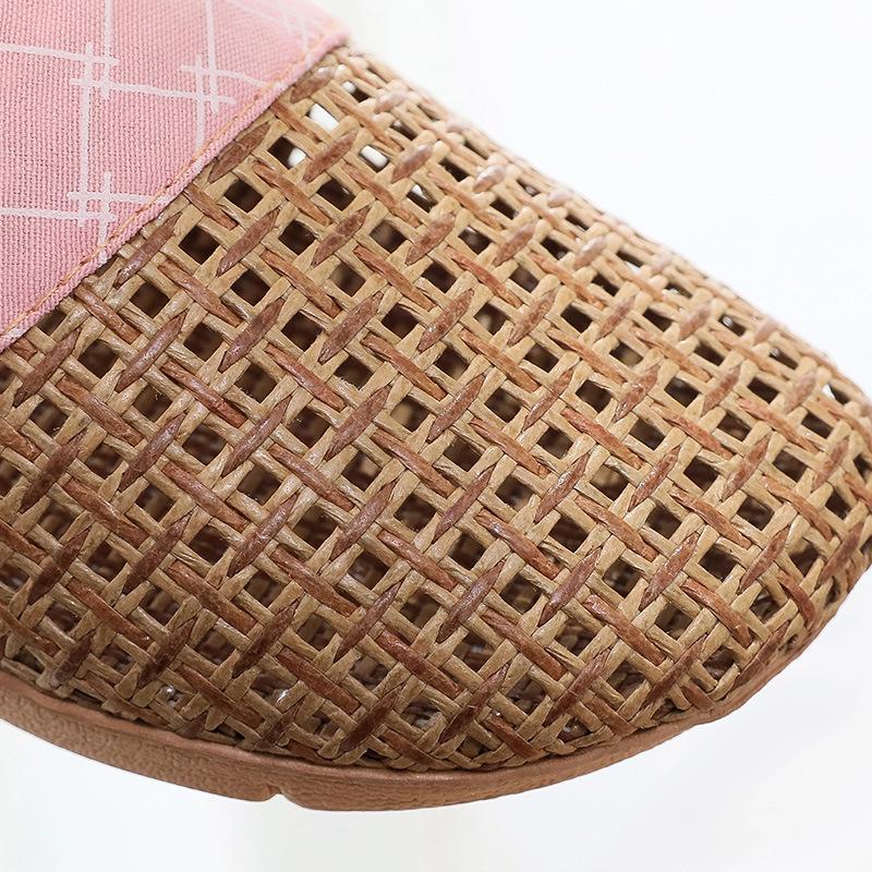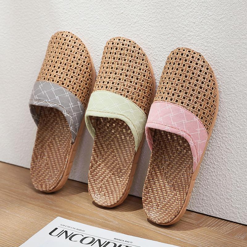 Летние женские тапочки из плетеной соломы и льна