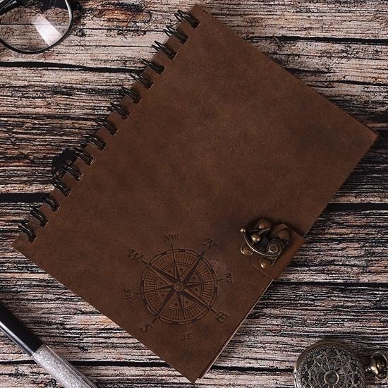 17,78 см (7") Кожаный спиральный дневник, блокнот для записей, тисненый вручную, коричневый, уникальный подарок для писателей и исследователей