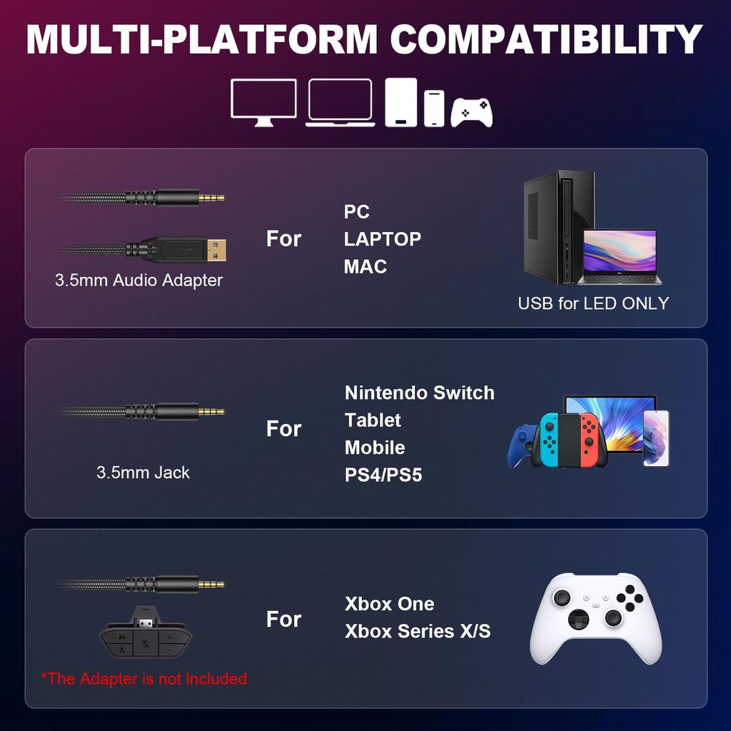 🎧【Профессиональный и удобный дизайн】Игровая гарнитура Krysenix сочетает в себе продуманный дизайн, стильную форму и яркую RGB-подсветку.. Идеальный подарок на Рождество или день рождения для мальчиков и девочек, семьи и друзей.. (уведомление: Для активации RGB-подсветку на наушниках необходимо подключить к USB-порту.)