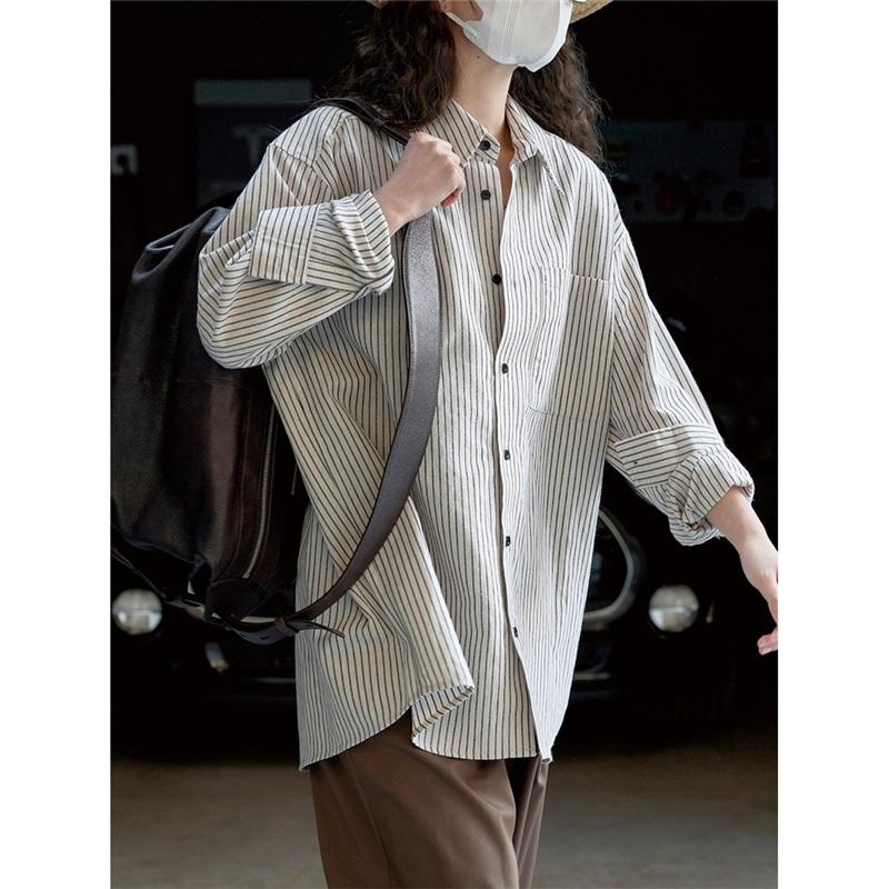 Весна и лето модная ленивая льняная полосатая рубашка свободный удобный дышащий повседневный топ для женщин