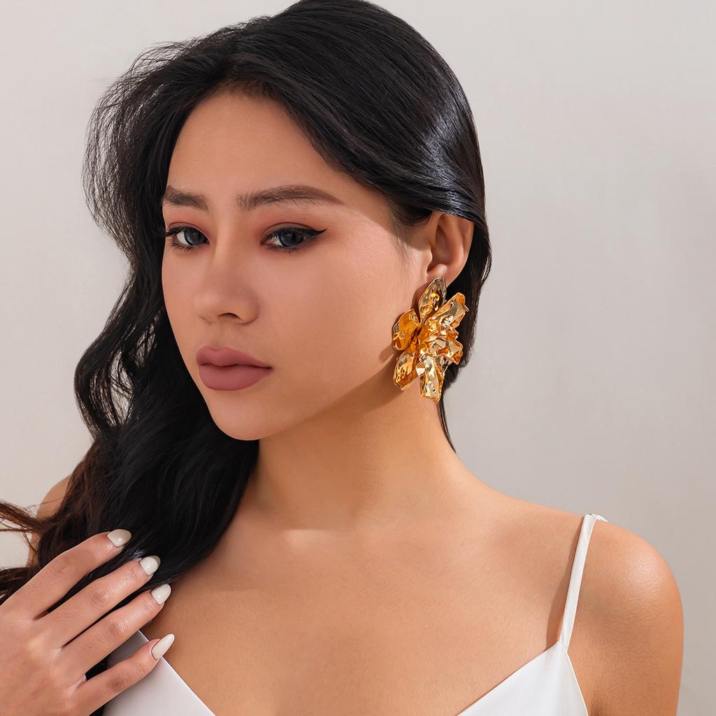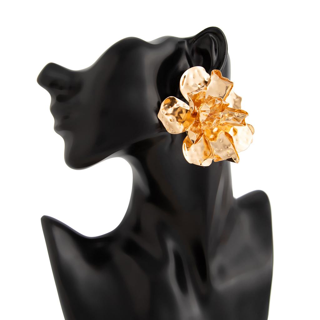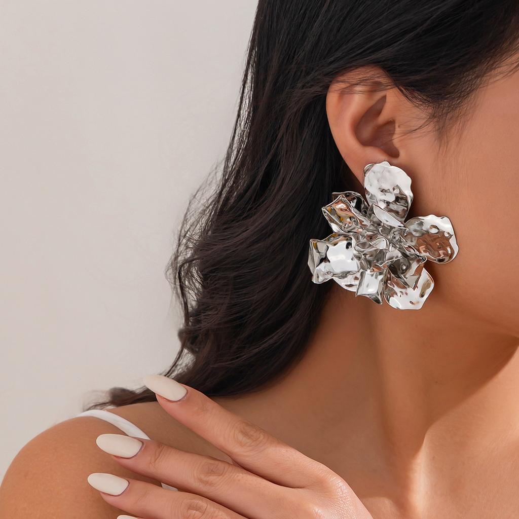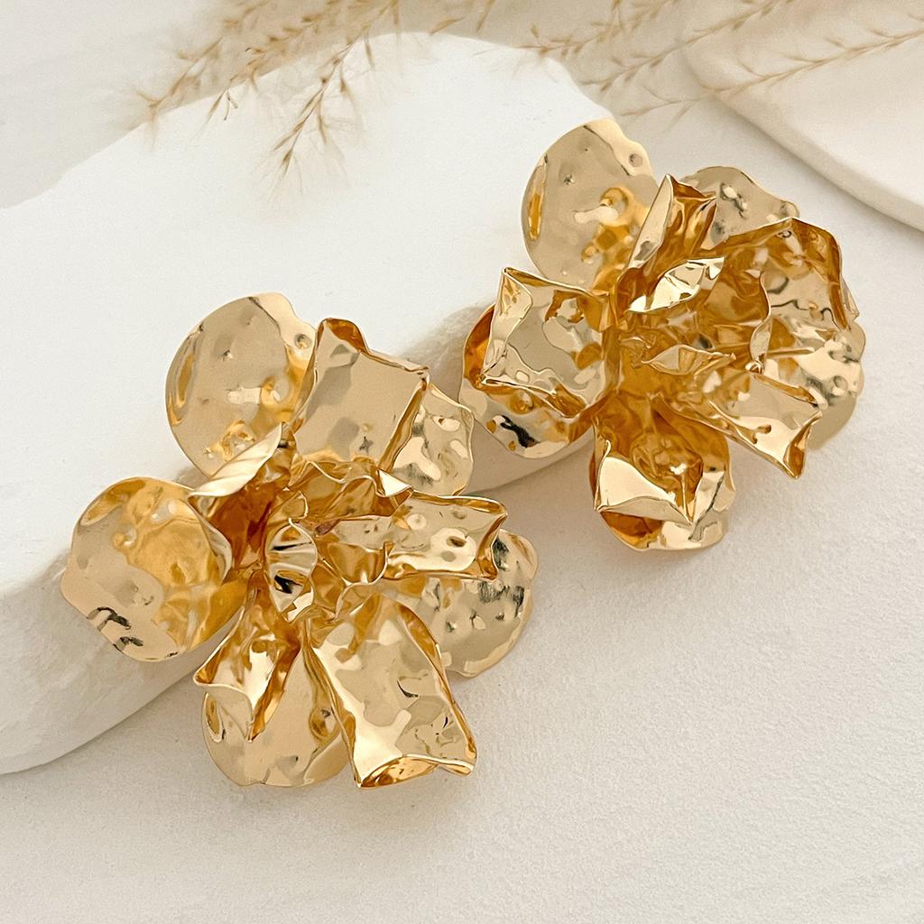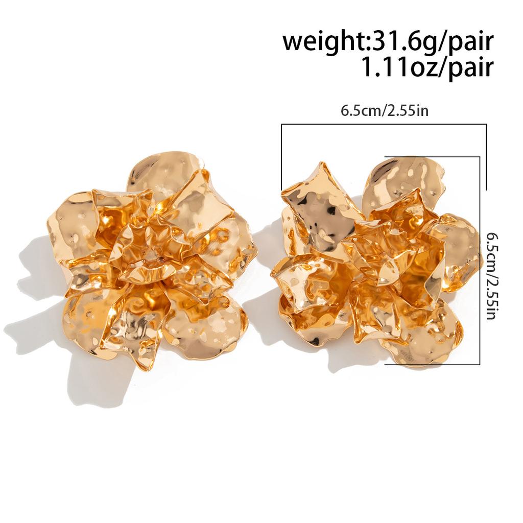 Серьги-гвоздики в стиле панк-метал с большими цветами для женщин, преувеличенные многослойные винтажные трехмерные плиссированные металлические цветочные серьги, ювелирные аксессуары