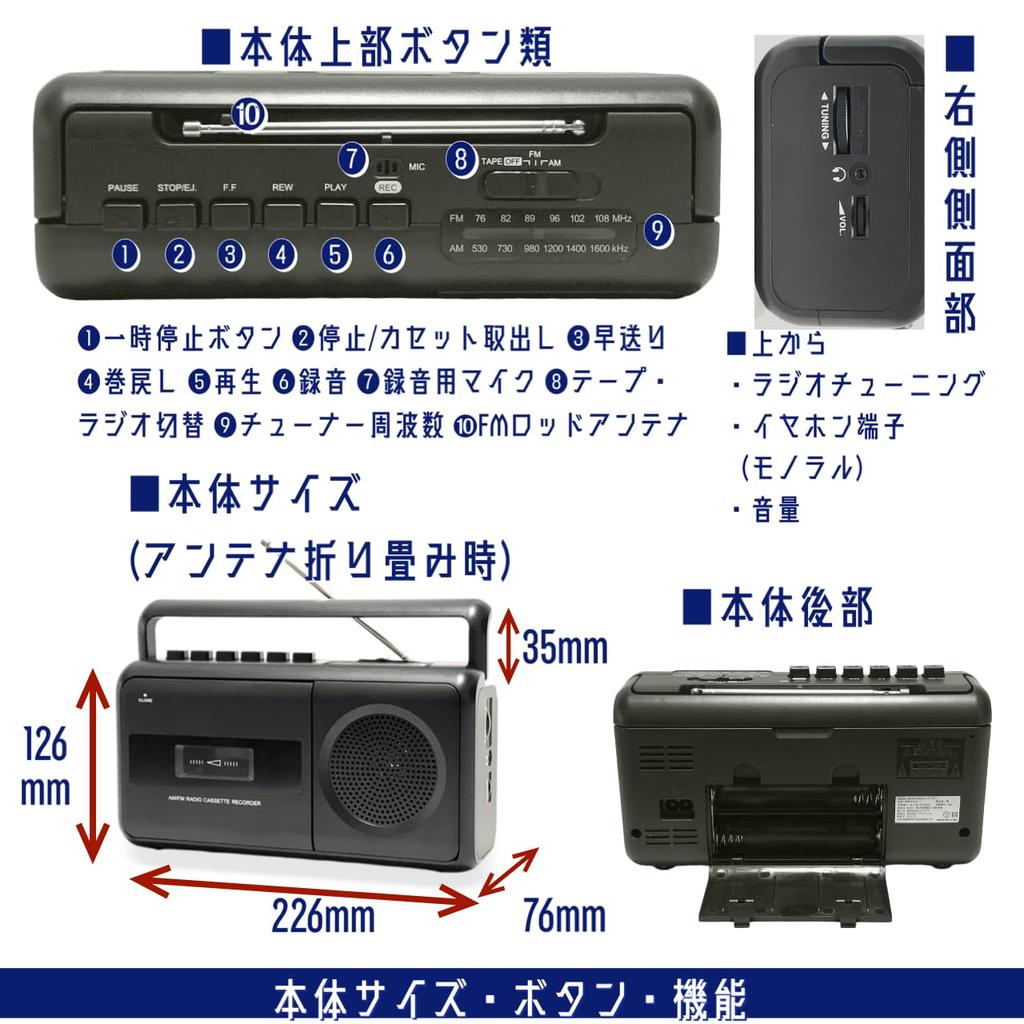 Радио и кассета Малый кассетный кассетный моноплеер, плеер, дека, FM/AM AC/сухая батарея, компактный, легкий, YSM-MMPR01 (черный)