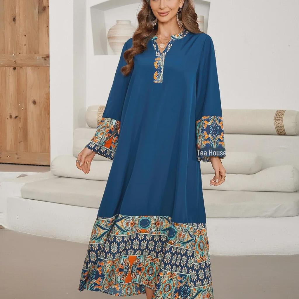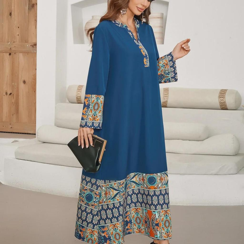 Элегантное платье с V-образным вырезом, рукавами средней длины и напечатанным швом