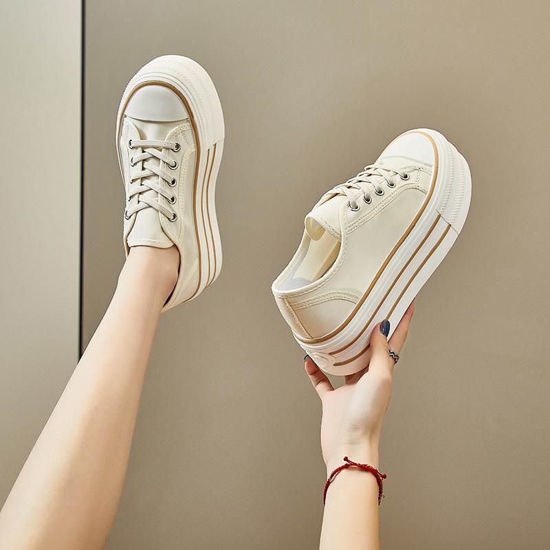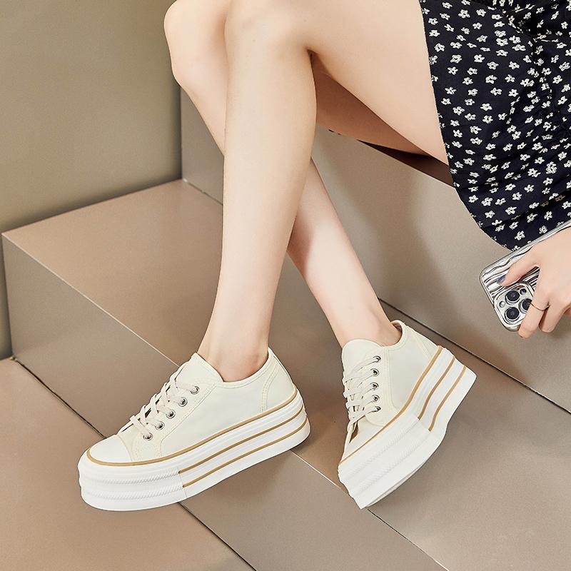 Повседневная женская обувь Эспадрильи Платформа Modis Универсальные с круглым носком Теннисные женские кроссовки Дышащая летняя парусиновая ткань со шнуровкой