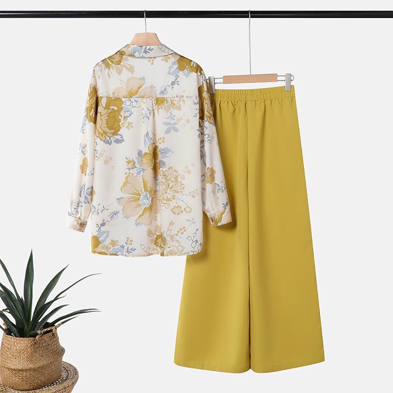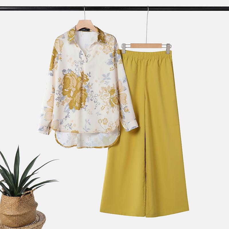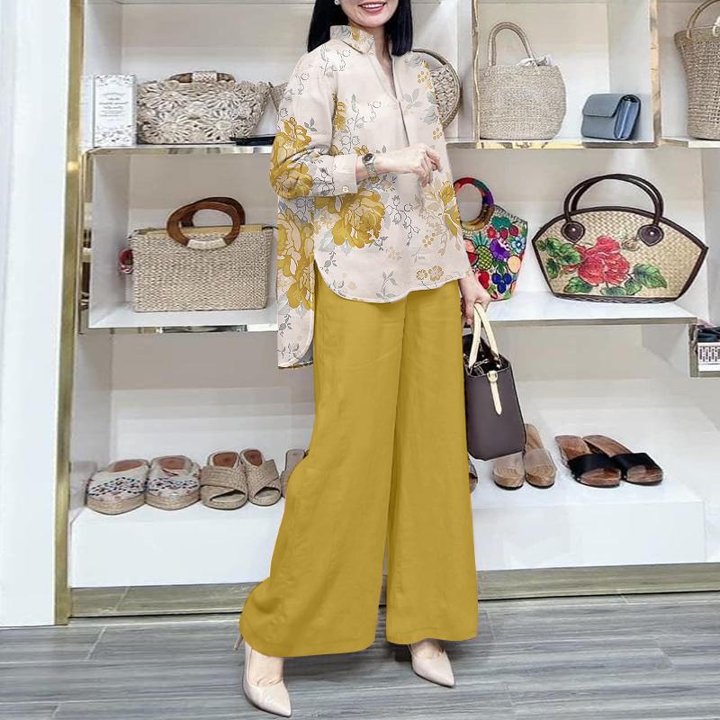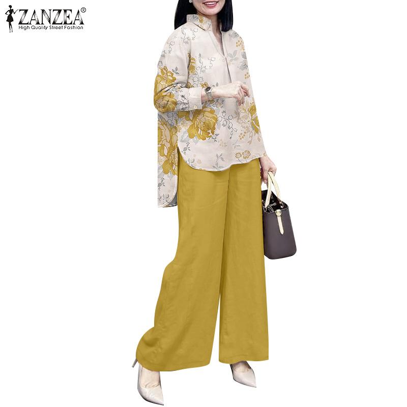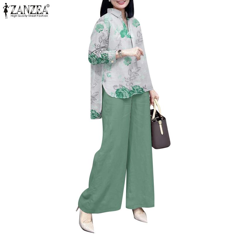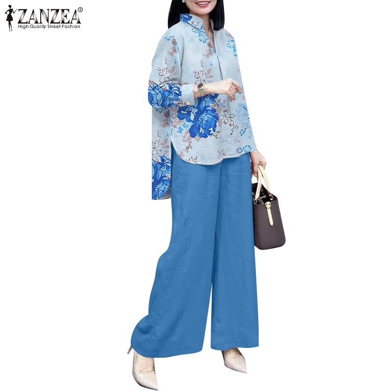 ZANZEA Женские повседневные комплекты из блузки и брюк с принтом из двух предметов