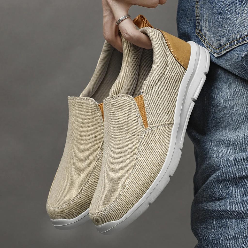 Мужская обувь, летняя парусиновая обувь, дышащие удобные уличные прогулочные кроссовки без шнуровки, классические мужские лоферы