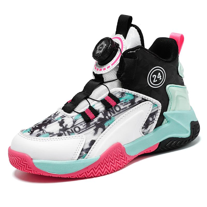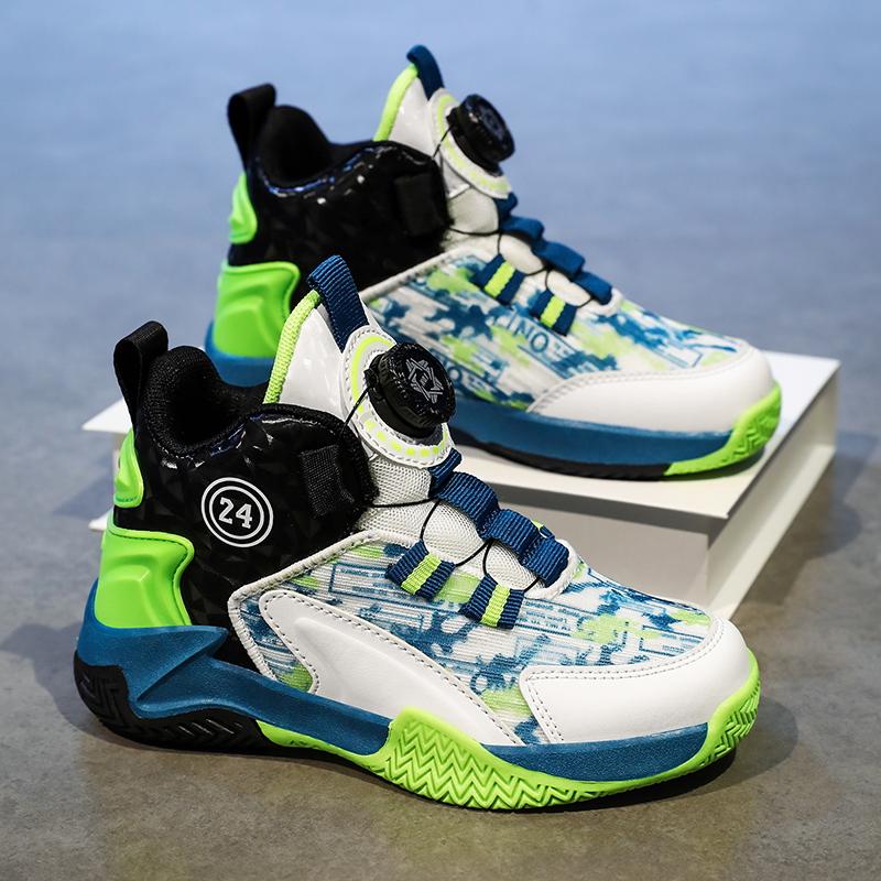 Детские кроссовки для баскетбола на самом деле боевые, для больших детей, для мальчиков, с вращающимися кнопками, дышащая сетчатая поверхность, нескользящие кроссовки для студентов