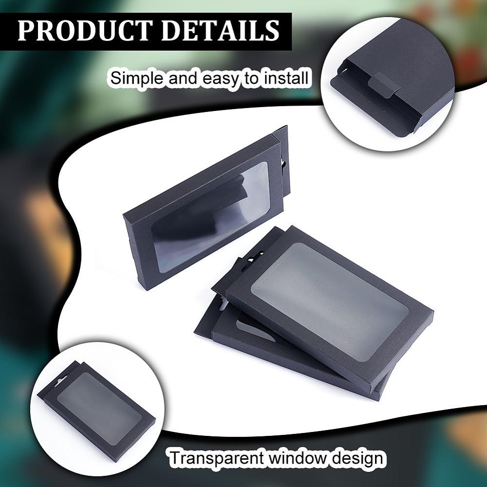 18 шт. черных картонных подарочных коробок с окном из ПВХ, прямоугольные складные коробки, креативная подарочная упаковка для сувениров, угощений, ювелирных изделий