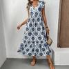 Женское летнее свободное длинное платье в стиле французских каникул с глубоким V-образным вырезом и принтом