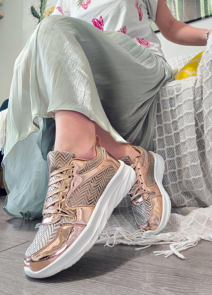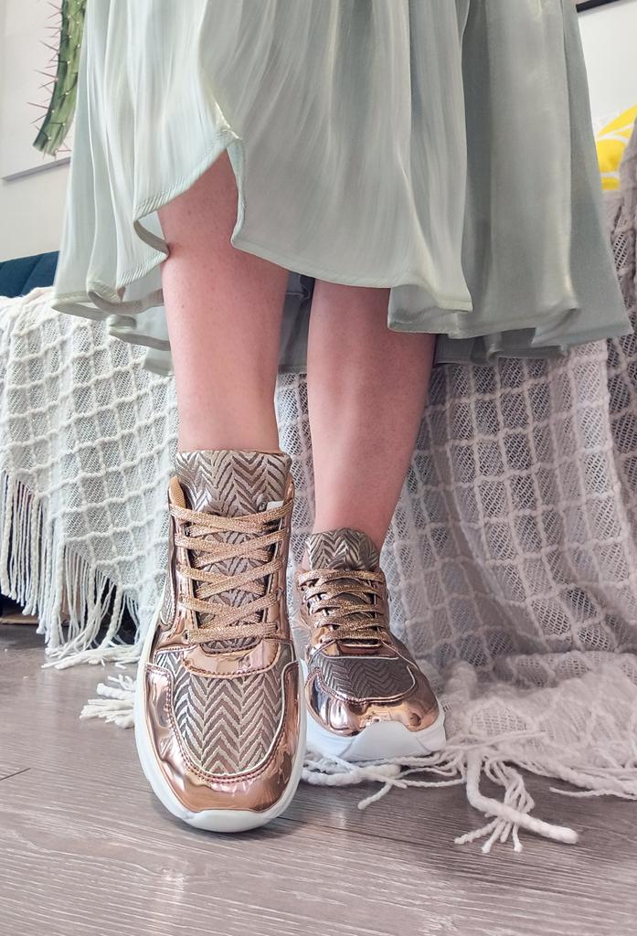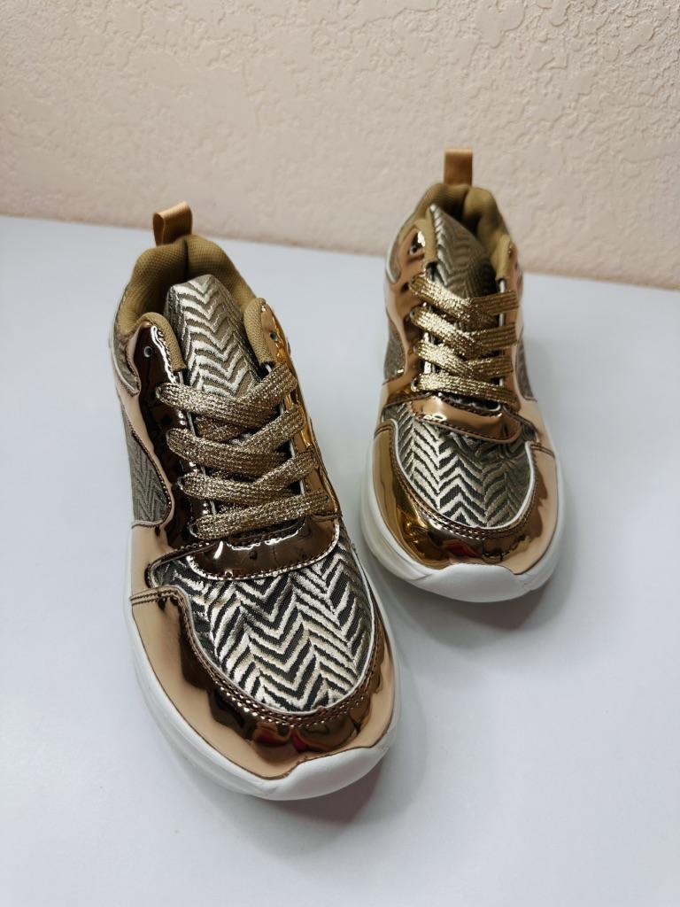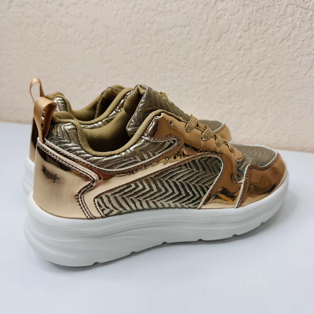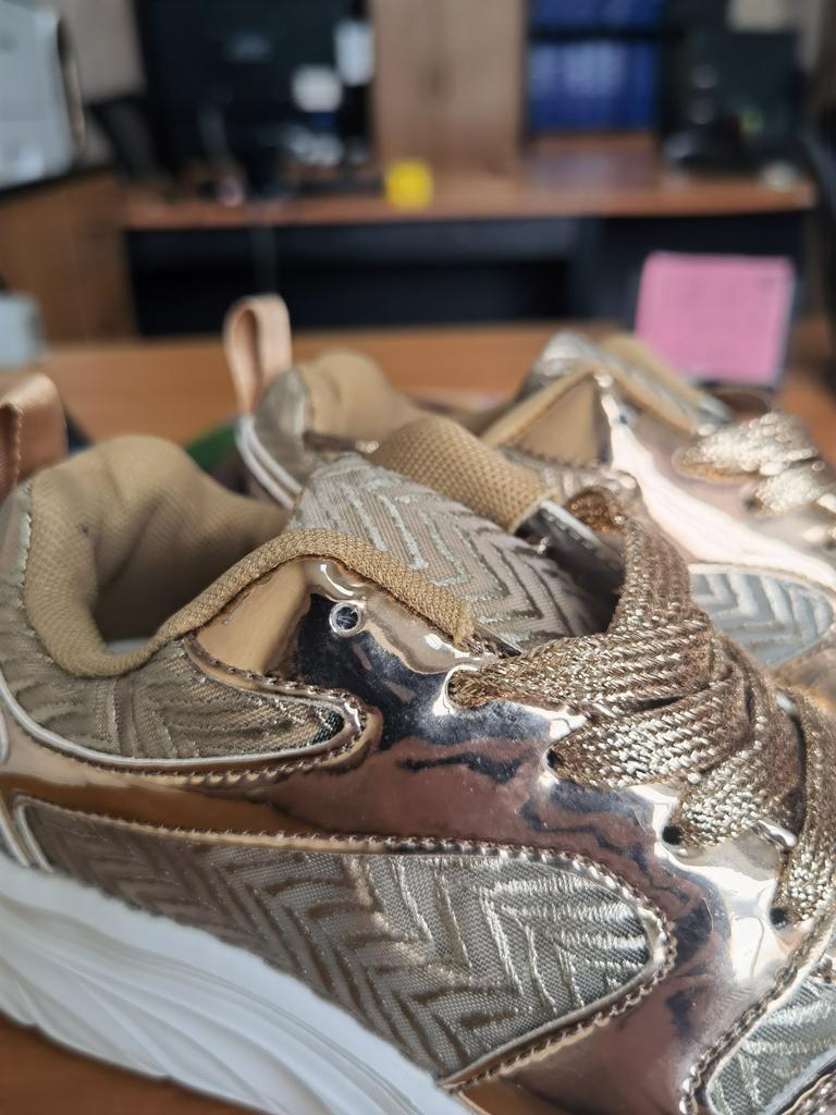 Эти кроссовки привлекают внимание своим эффектным металлизированным дизайном в оттенке розового золота. 🔸На выбор есть и серебристые. Размеры: 35-42. На мне 38. По стельке 24 см. На стопу 23,5 см подошли идеально. 🔸Сочетание блестящих вставок с текстильными элементами, образующими геометрический узор, создаёт стильный и современный вид. 🔸Массивная белая подошва обеспечивает комфорт и амортизацию. 🔸Эти кроссовки станут ярким акцентом в вашем образе, добавив гламура и оригинальности как спортивному, так и повседневному стилю. Рекомендую 👍 Ставлю ⭐ ⭐ ⭐ ⭐ ⭐ Большое спасибо продавцу ❤️ и Joom ❤️