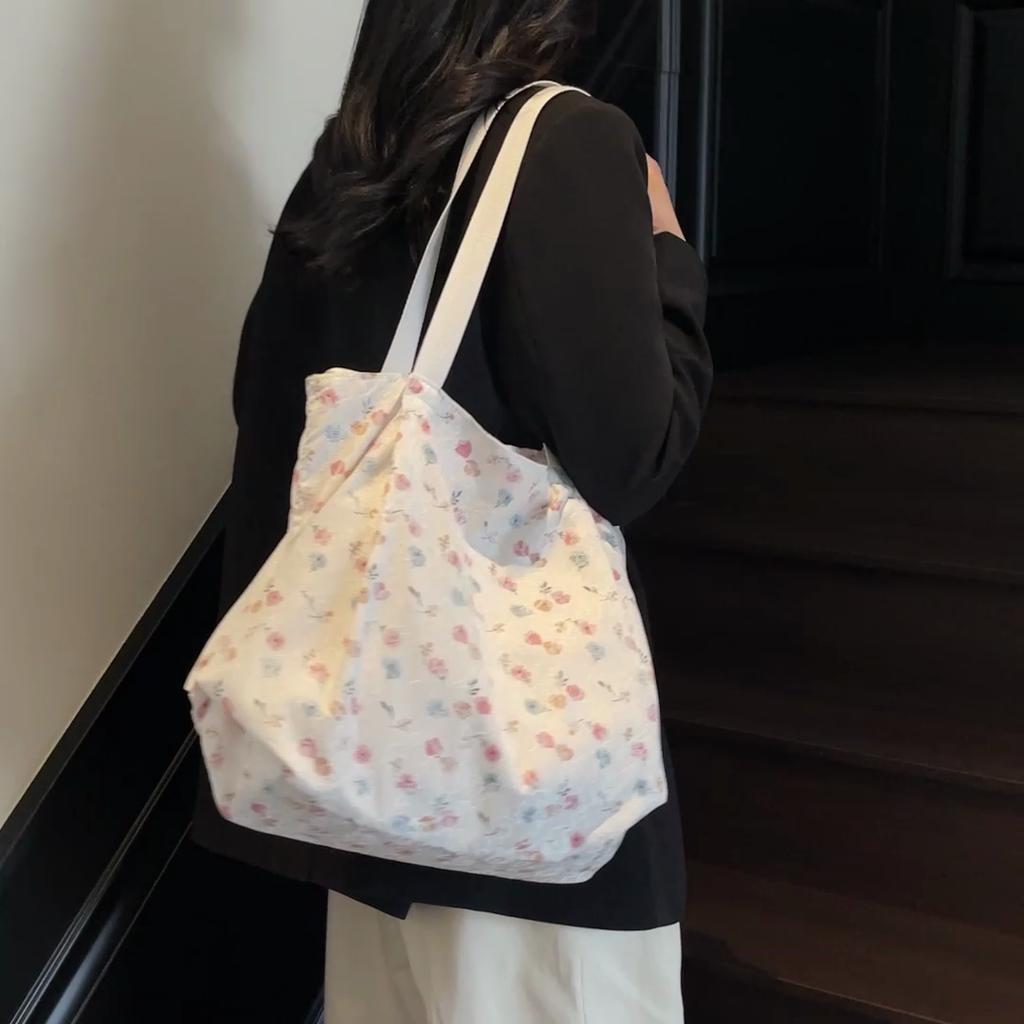 Женская сумка-тоут с цветочным принтом, большая вместимость, сумка на плечо