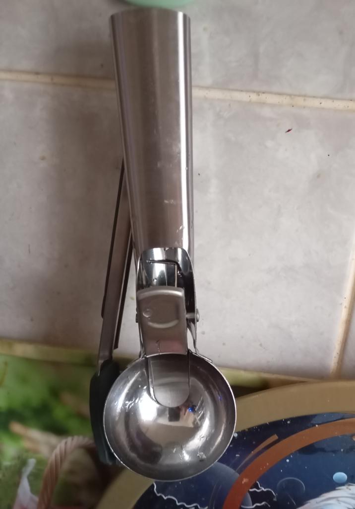 Удобная, сверкающая, вместительная: ложка для мороженого🍨 Как в детстве, когда мама приводила меня в кафе-мороженое "Сказка", и тетенька в белоснежном фартуке накладывала заветные кругляшки. С сиропчиком☺️ ☀️Выбрала размер "L", побольше, она, действительно, вместительная ☀️Удобный рычажок, с помощью которого мороженое кладут в креманку ☀️Материал - нержавеющая сталь: прямо сверкает ☀️Есть отверстие, ложечка висит на кухне на крючке Можно использовать как ложку нуазетт 🍉🍉🍉 Очень понравилась💕 Удачных покупок💋