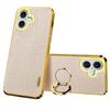 For iPhone 16 Case Crocodile Texture Leather+TPU Electroplating Phone Cover with Ring Kickstand - Black