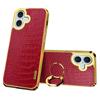 For iPhone 16 Case Crocodile Texture Leather+TPU Electroplating Phone Cover with Ring Kickstand - Black — купить товар онлайн с бесплатной доставкой до всему миру!