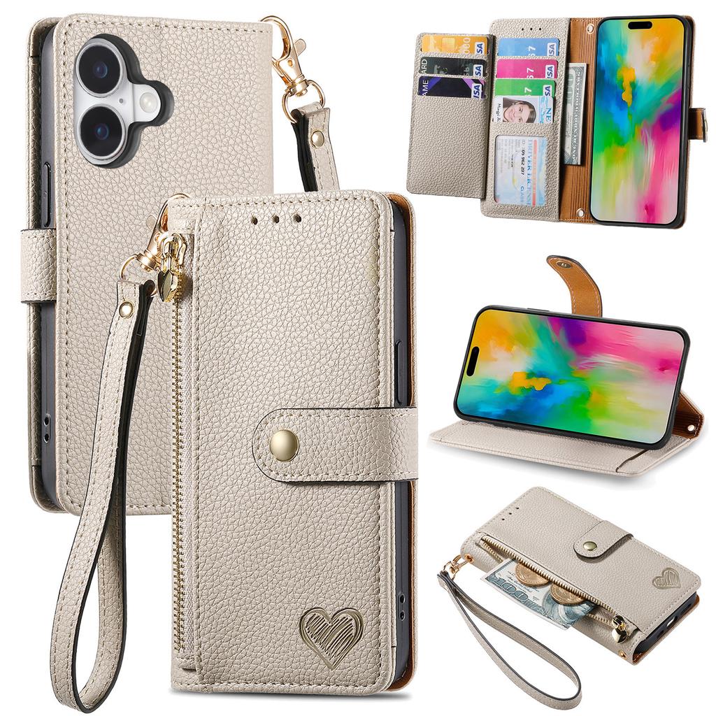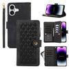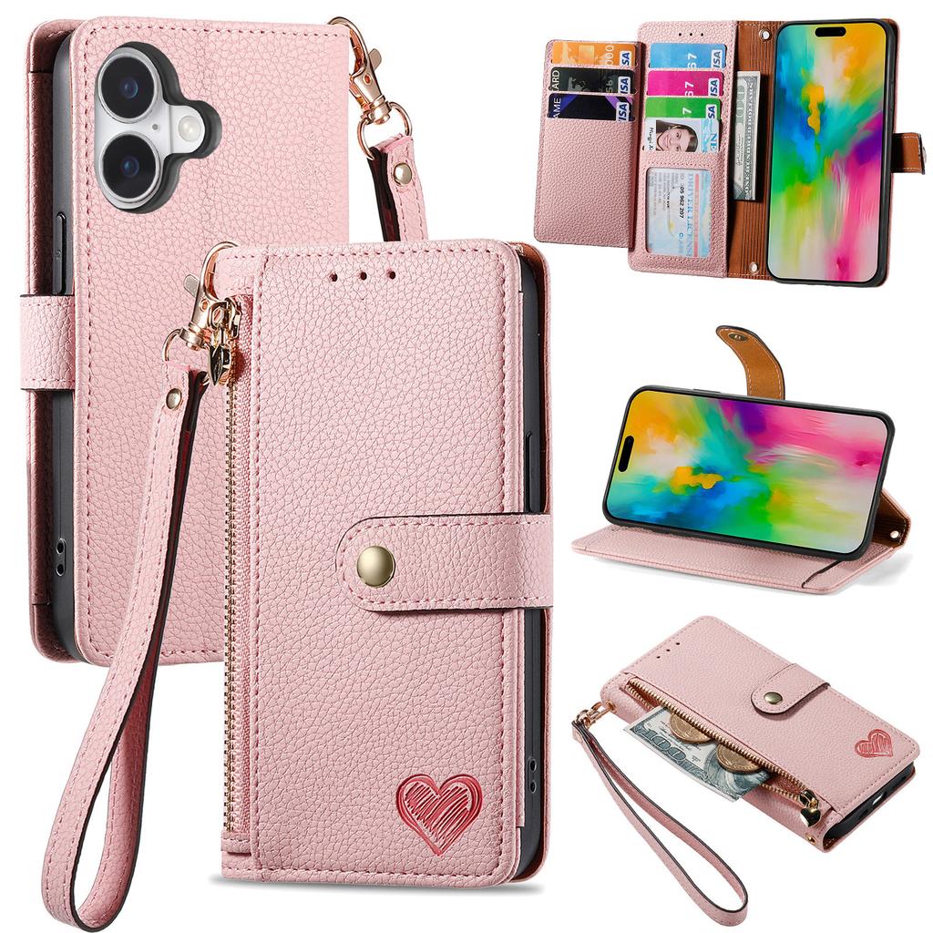 For iPhone 16 Case RFID Blocking Zipper Pocket Leather Wallet Phone Cover - Black