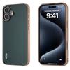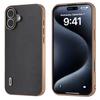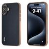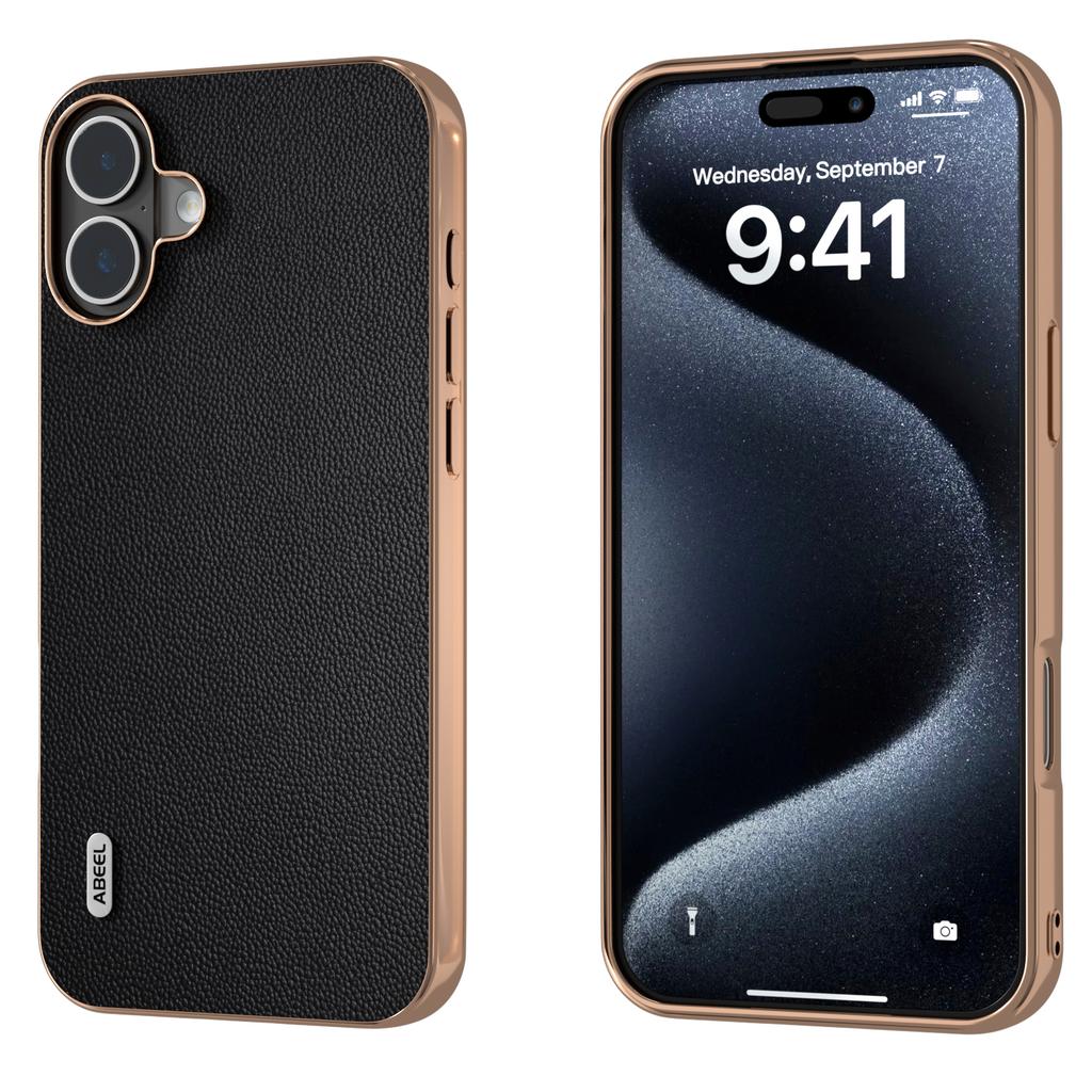 ABEEL For iPhone 16 Case Electroplating Genuine Cow Leather PC Phone Cover - Black — купить товар онлайн с бесплатной доставкой до всему миру!