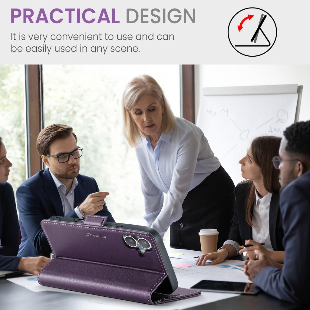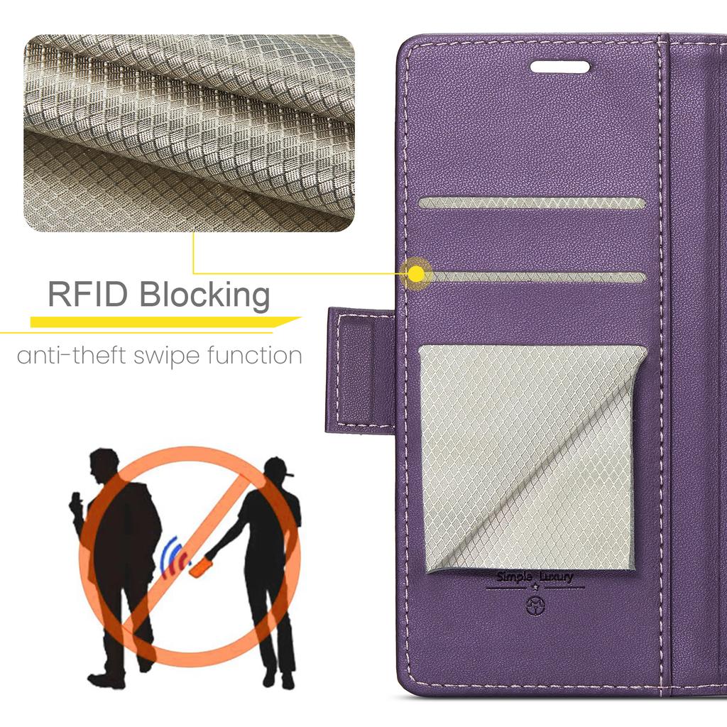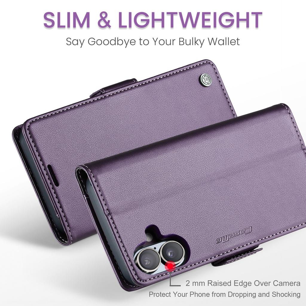 For iPhone 16 Leather Case CASEME 023 RFID Blocking 3 Card Slot Mobile Cover - Purple