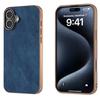 For iPhone 16 Case Electroplating Edge PU Leather Coated TPU+PC Phone Cover - Baby Blue