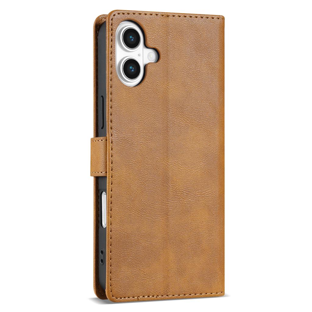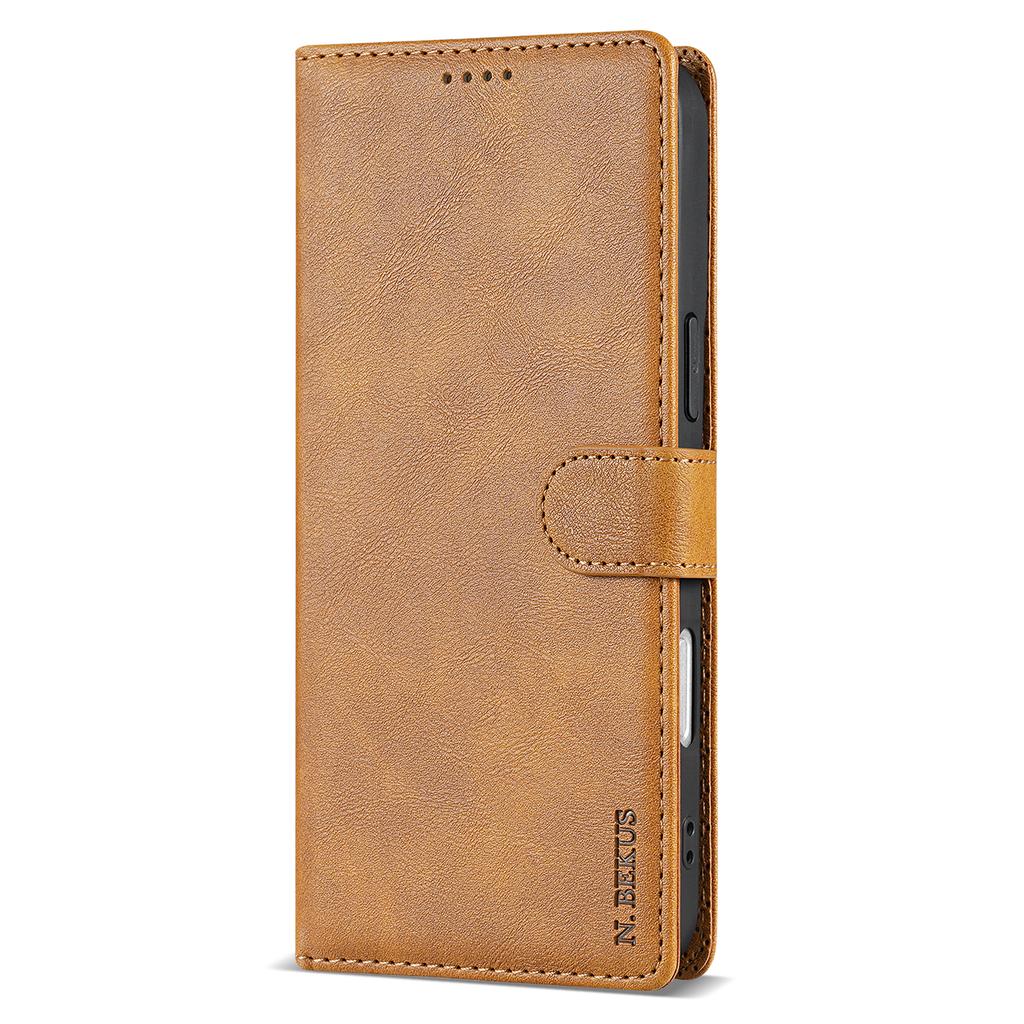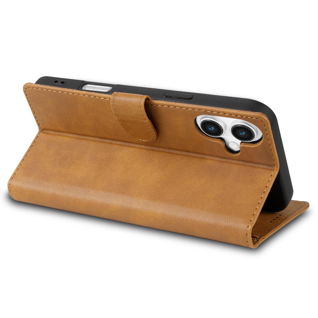 N.BEKUS CSJ-001 For iPhone 16 Stand Case PU Leather Wallet Phone Cover - Brown