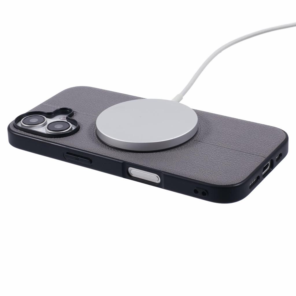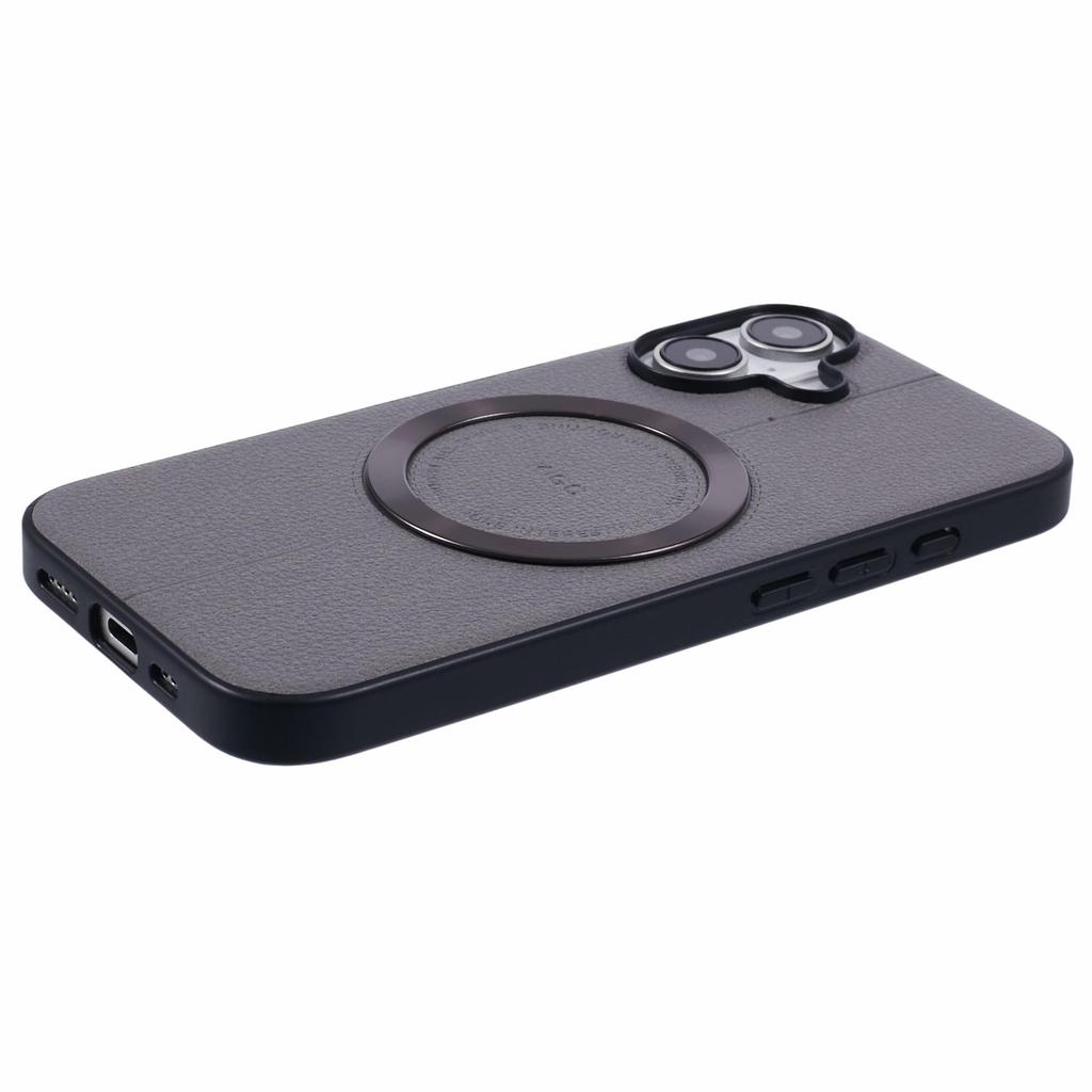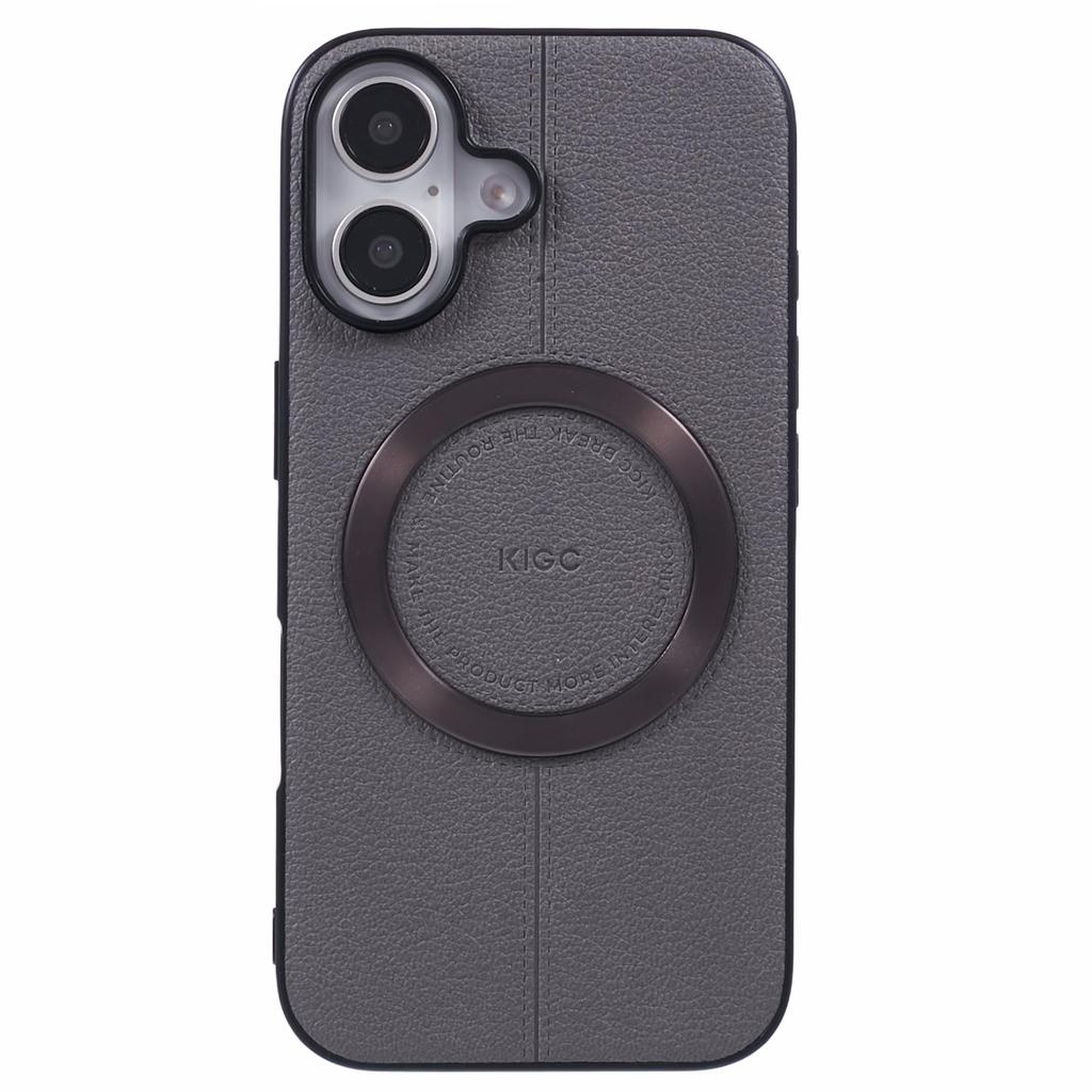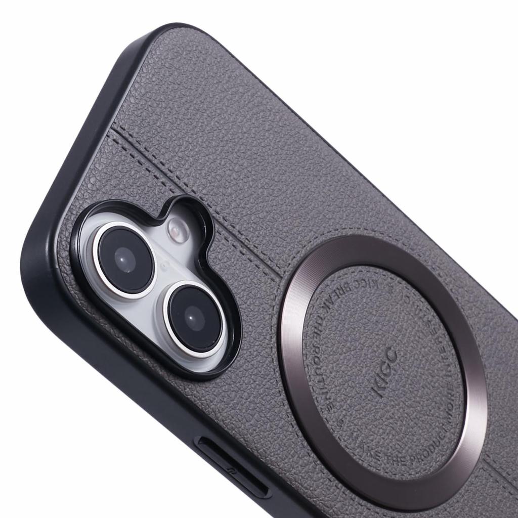 Чехол KIGC для iPhone 16, совместимый с чехлом MagSafe Litchi Texture Leather Cover из поликарбоната и термополиуретана - серый