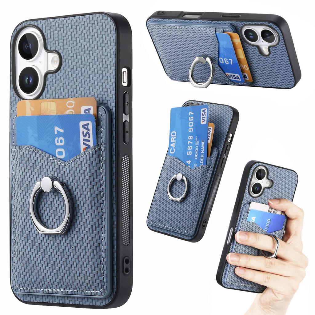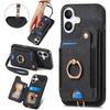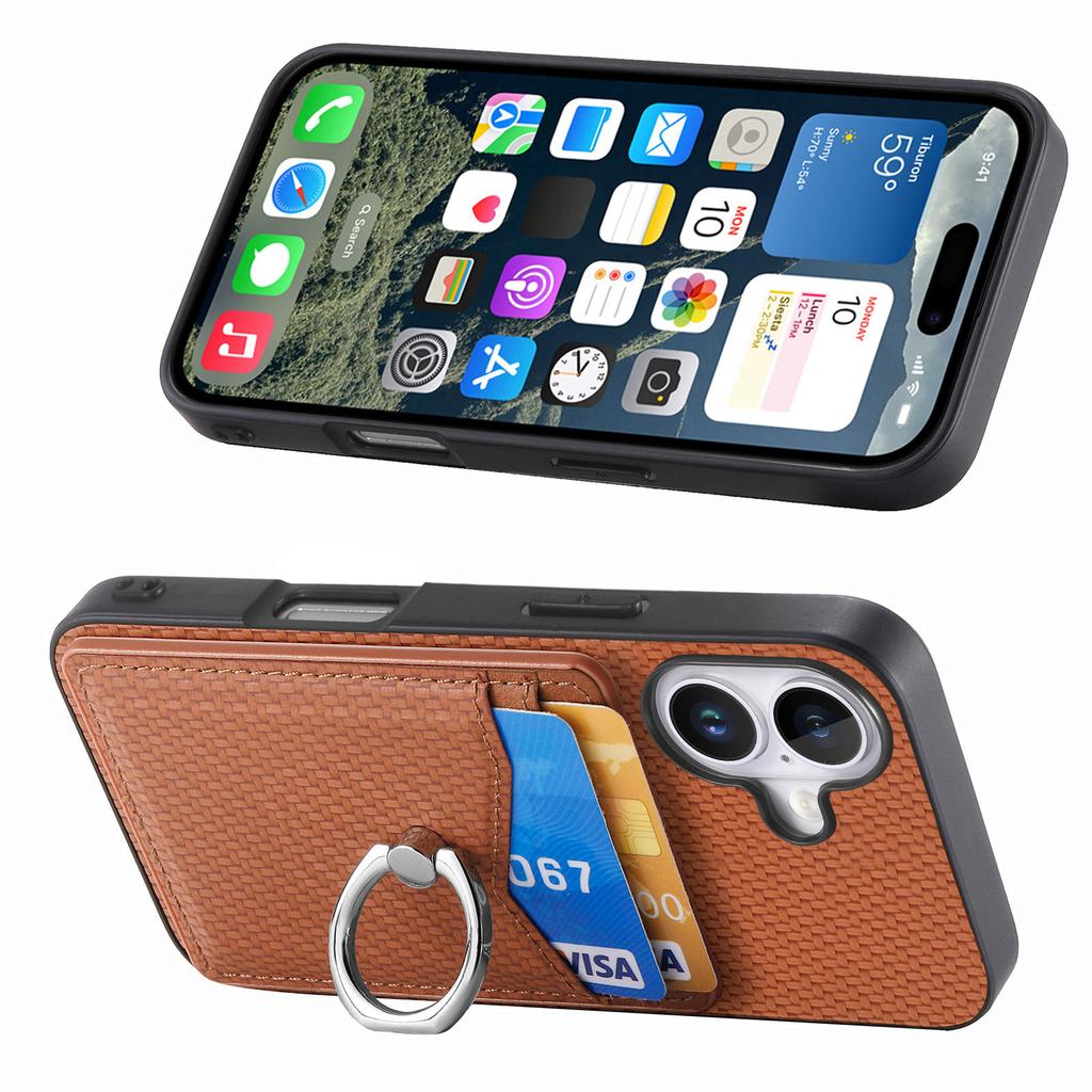 For iPhone 16 Case Card Slots Ring Holder Kickstand Phone Cover - Brown