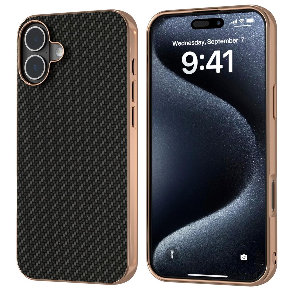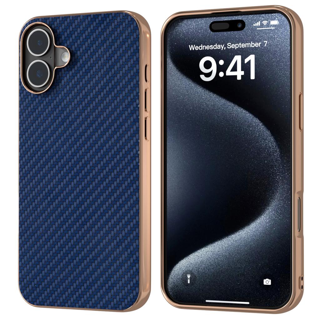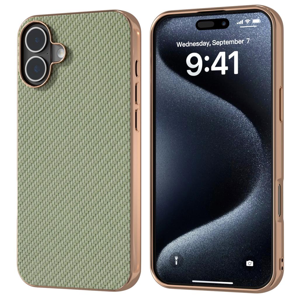 For iPhone 16 Case Electroplating Phone Cover Carbon Fiber Texture PU+TPU Protective Case - Green