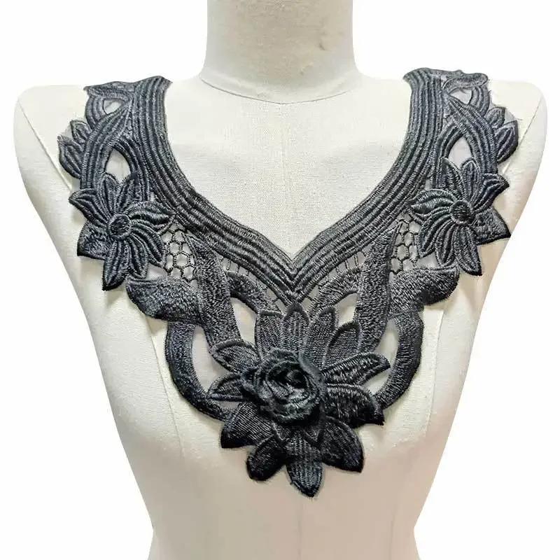 Красивый большой цветочный вышитый воротник, черно-белый цветочный кружевной декоративный воротник, аксессуары для женской одежды