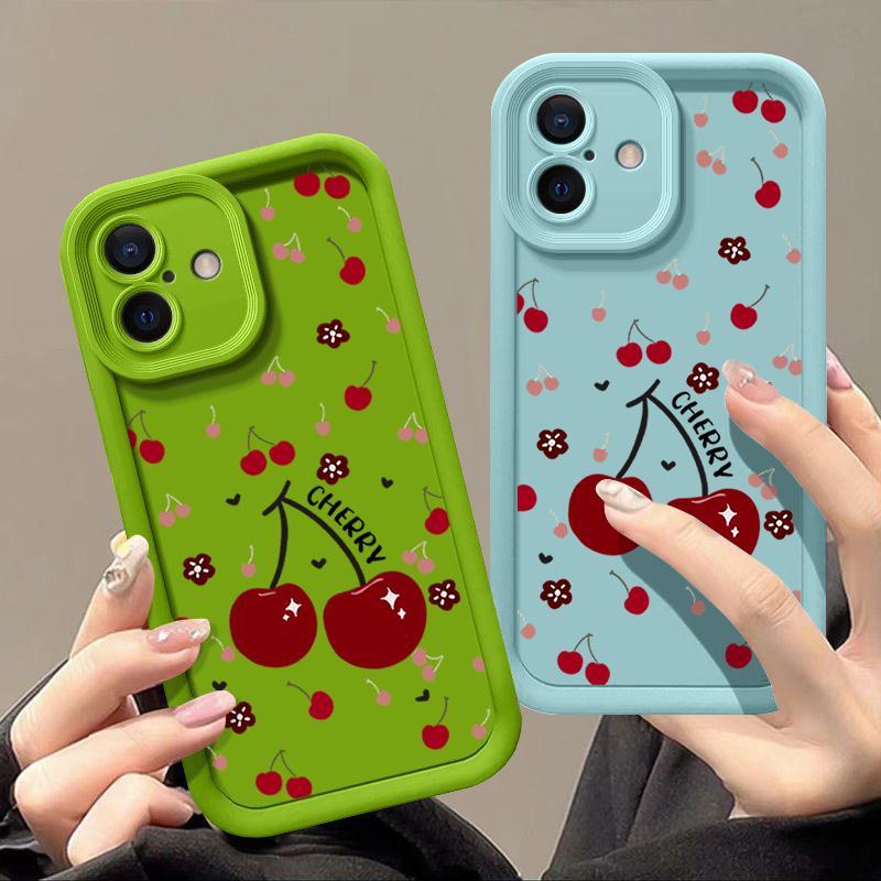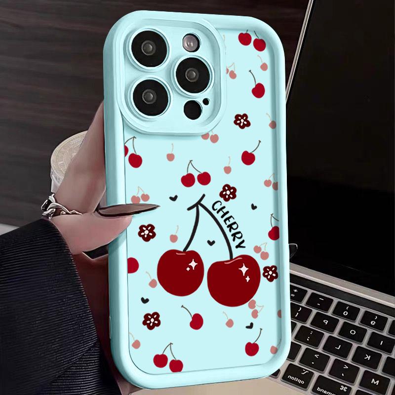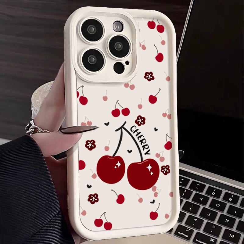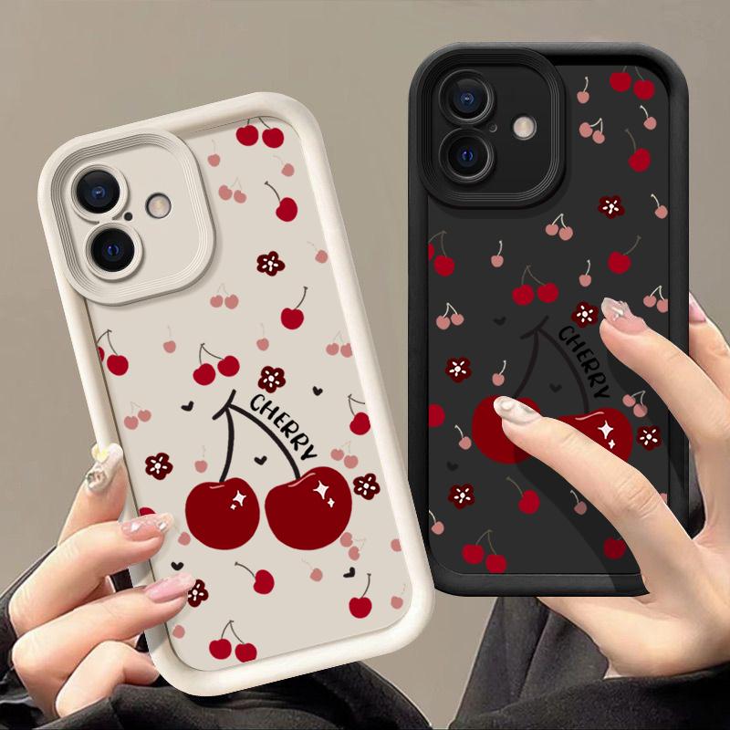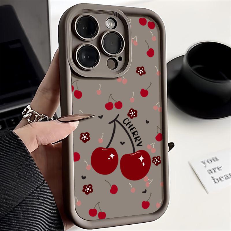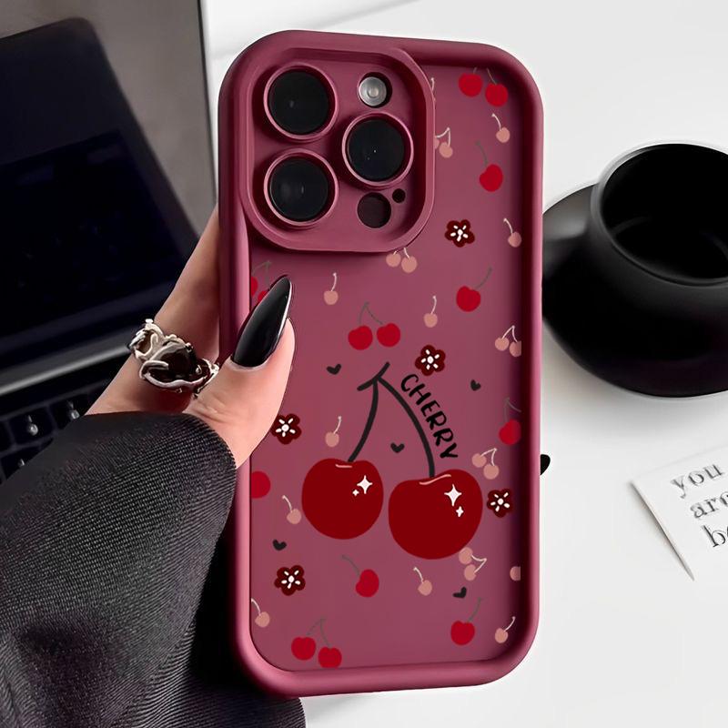 Красный вишневый узор TPU мягкий чехол для телефона iPhone 16 Pro Max 15 Pro 14 13 12 11 XR XS матовый противоударный защитный бампер для объектива