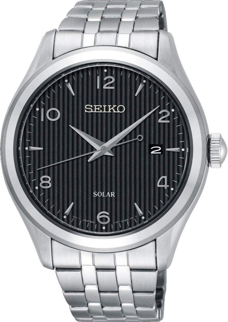 Seiko Аналоговые солнечные часы с ремешком из нержавеющей стали, мужские SNE489P1, серебристые,