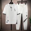 Весна-лето Ретро свободная мужская повседневная футболка с короткими рукавами и V-образным вырезом + широкие дышащие брюки на шнурке из двух предметов