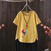Женская летняя льняная рубашка, футболка с ретро-графикой, короткий рукав, круглый вырез, S-4XL