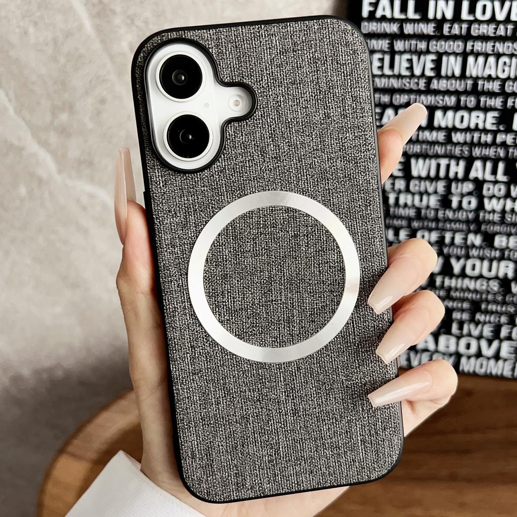 Для iPhone 16 Чехол Противоударный ТПУ+Тканевая Задняя Крышка для Телефона Совместимый с MagSafe - Фиолетовый