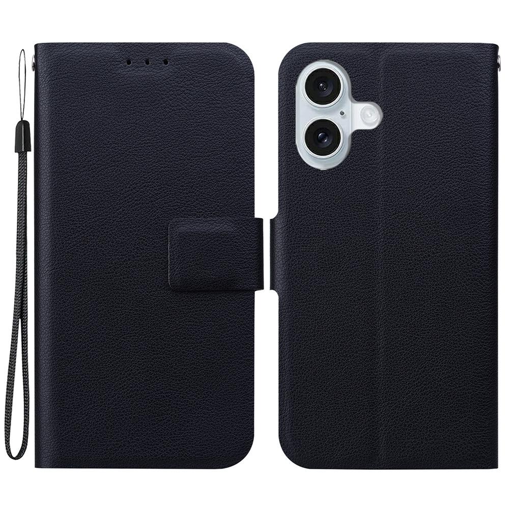 Чехол для iPhone 16 Ультратонкий из ПУ кожи + ТПУ Чехол для телефона со слотом для карт - Черный
