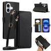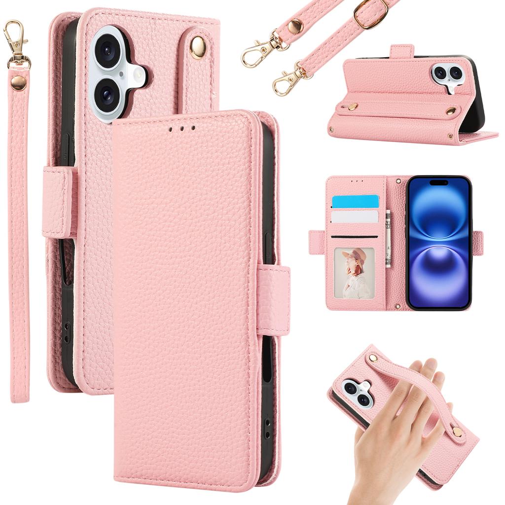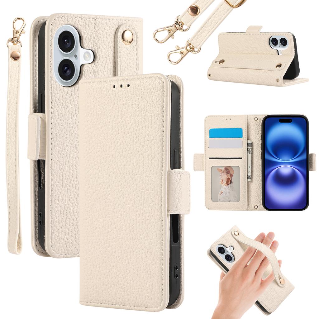 For iPhone 16 Leather Case with Card Holder, Straps, Shockproof Wallet Phone Cover - Khaki