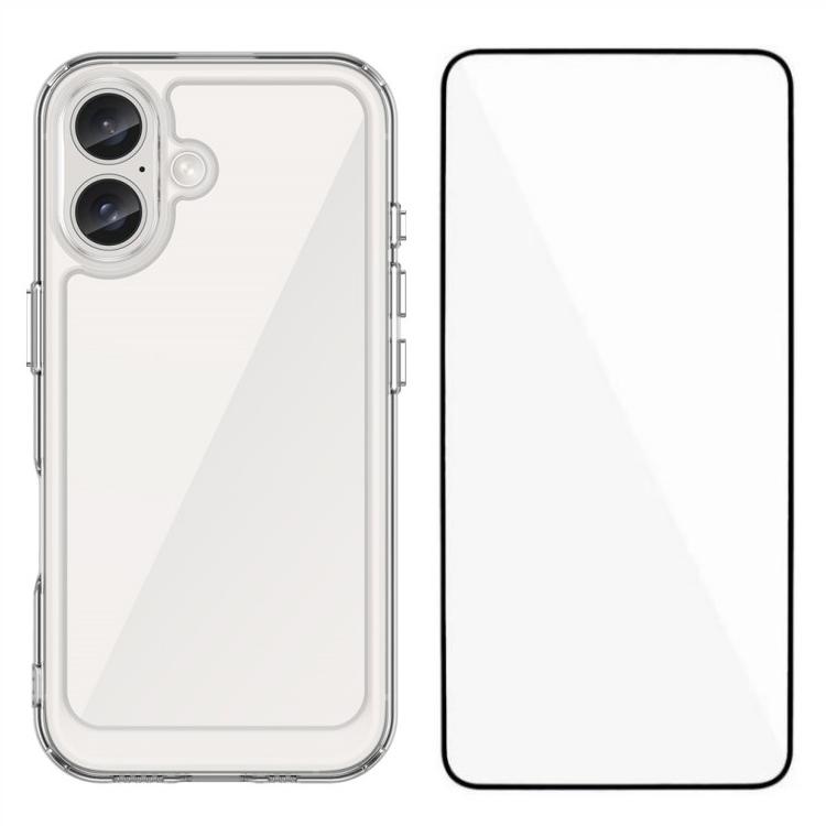 WANLONFENG MF Series for iPhone 16 Case TPU+Acrylic Clear Phone Cover with Tempered Glass Film