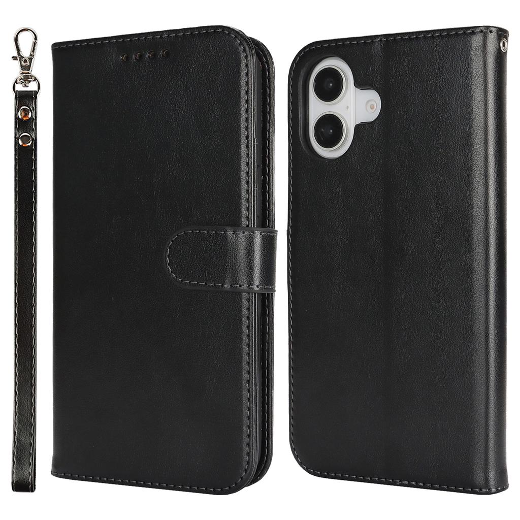 For iPhone 16 Case R61 Texture Wallet Leather Flip Phone Cover - Black